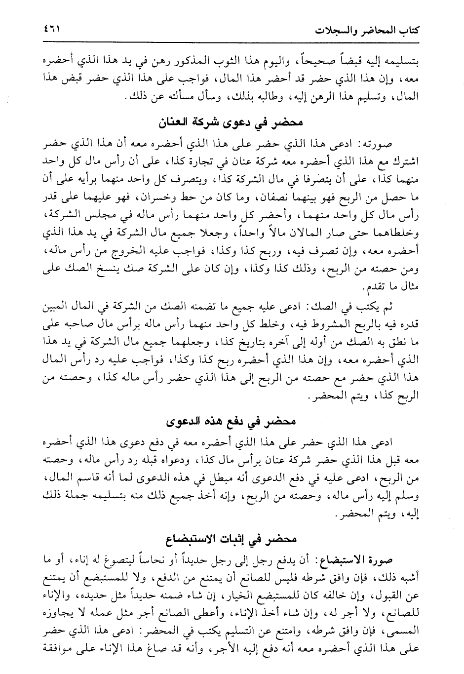 ادعى هذا الذي حضر على هذا الذي أحضره معه في دفع دعوى هذا الذي أحضره معه قبل هذا الذي حضر شركة عنان برأس مال كذا، ودعواه قبله رد رأس ماله، وحصته من الربح، ادعى عليه في دفع الدعوى أنه مبطل في هذه الدعوى لما أنه قاسم المال، وسلم إليه رأس ماله، وحصته من الربح، وإنه أخذ جميع ذلك منه بتسليمه جملة ذلك إليه، ويتم المحضر.