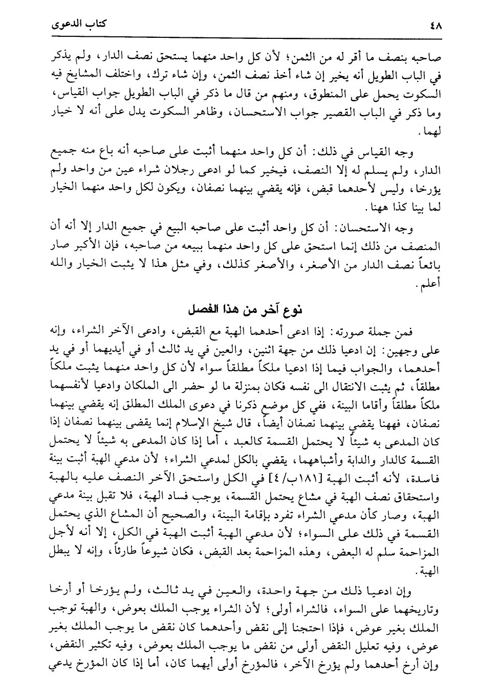 وجه الاستحسان: أن كل واحد أثبت على صاحبه البيع في جميع الدار إلا أنه أن المنصف من ذلك إنما استحق على كل واحد منهما ببيعه من صاحبه، فإن الأكبر صار بائعاً نصف الدار من الأصغر، والأصغر كذلك، وفي مثل هذا لا يثبت الخيار والله أعلم.