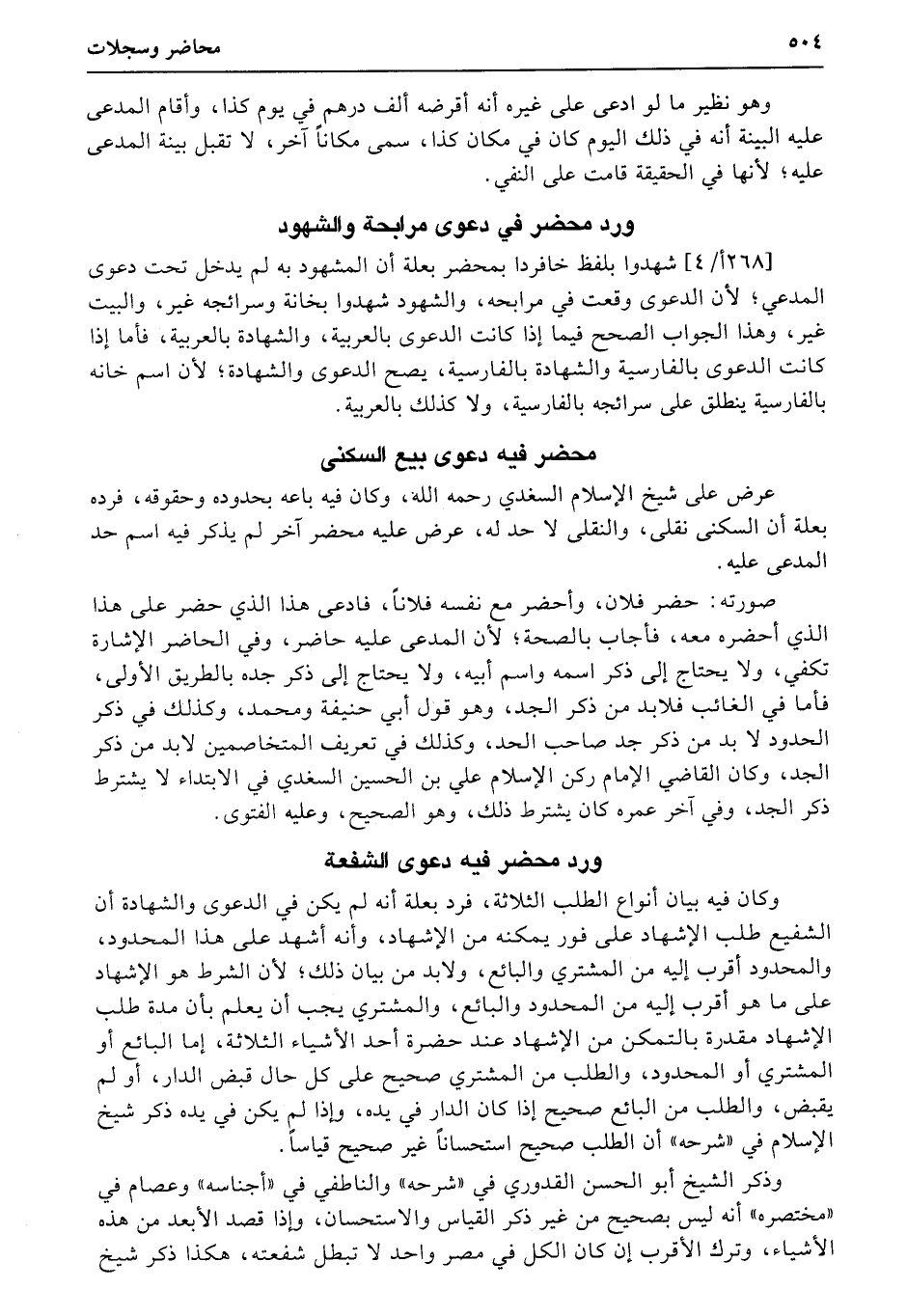 عرض على شيخ الإسلام السعدي رحمه الله، وكان فيه باعه بحدوده وحقوقه، فرده بعلة أن السكنى نقلى، والنقلى لا حد له، عرض عليه محضر آخر لم يذكر فيه اسم حد المدعى عليه.