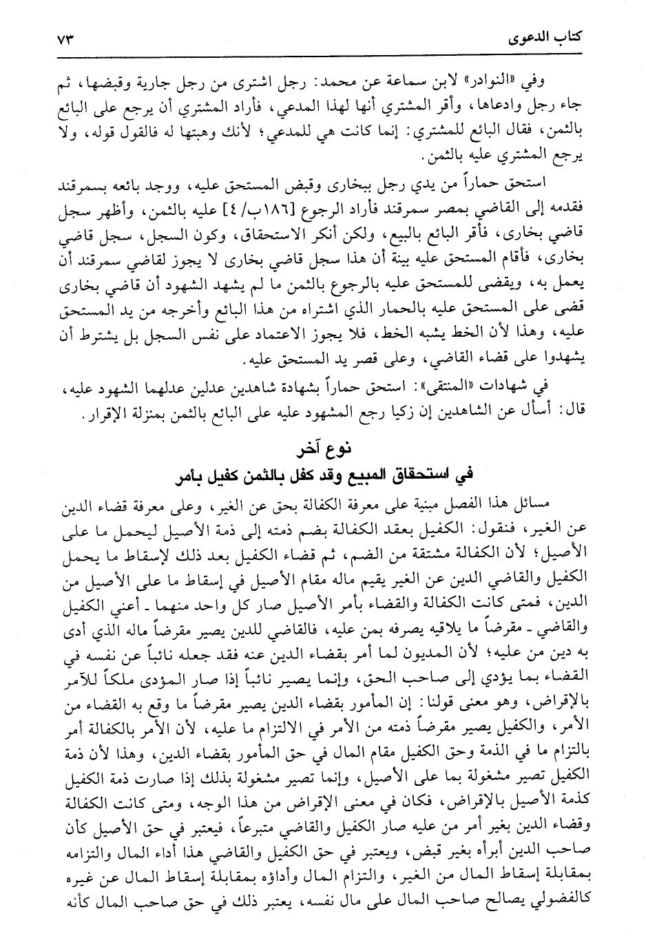 استحق حماراً من يدي رجل ببخارى وقبض المستحق عليه، ووجد بائعه بسمرقند فقدمه إلى القاضي بمصر سمرقند فأراد الرجوع (186ب4) عليه بالثمن، وأظهر سجل قاضي بخارى، فأقر البائع بالبيع، ولكن أنكر الاستحقاق، وكون السجل، سجل قاضي بخارى، فأقام المستحق عليه بينة أن هذا سجل قاضي بخارى لا يجوز لقاضي سمرقند أن يعمل به، ويقضى للمستحق عليه بالرجوع بالثمن ما لم يشهد الشهود أن قاضي بخارى قضى على المستحق عليه بالحمار الذي اشتراه من هذا البائع وأخرجه من يد المستحق عليه، وهذا لأن الخط يشبه الخط، فلا يجوز الاعتماد على نفس السجل بل يشترط أن يشهدوا على قضاء القاضي، وعلى قصر يد المستحق عليه.