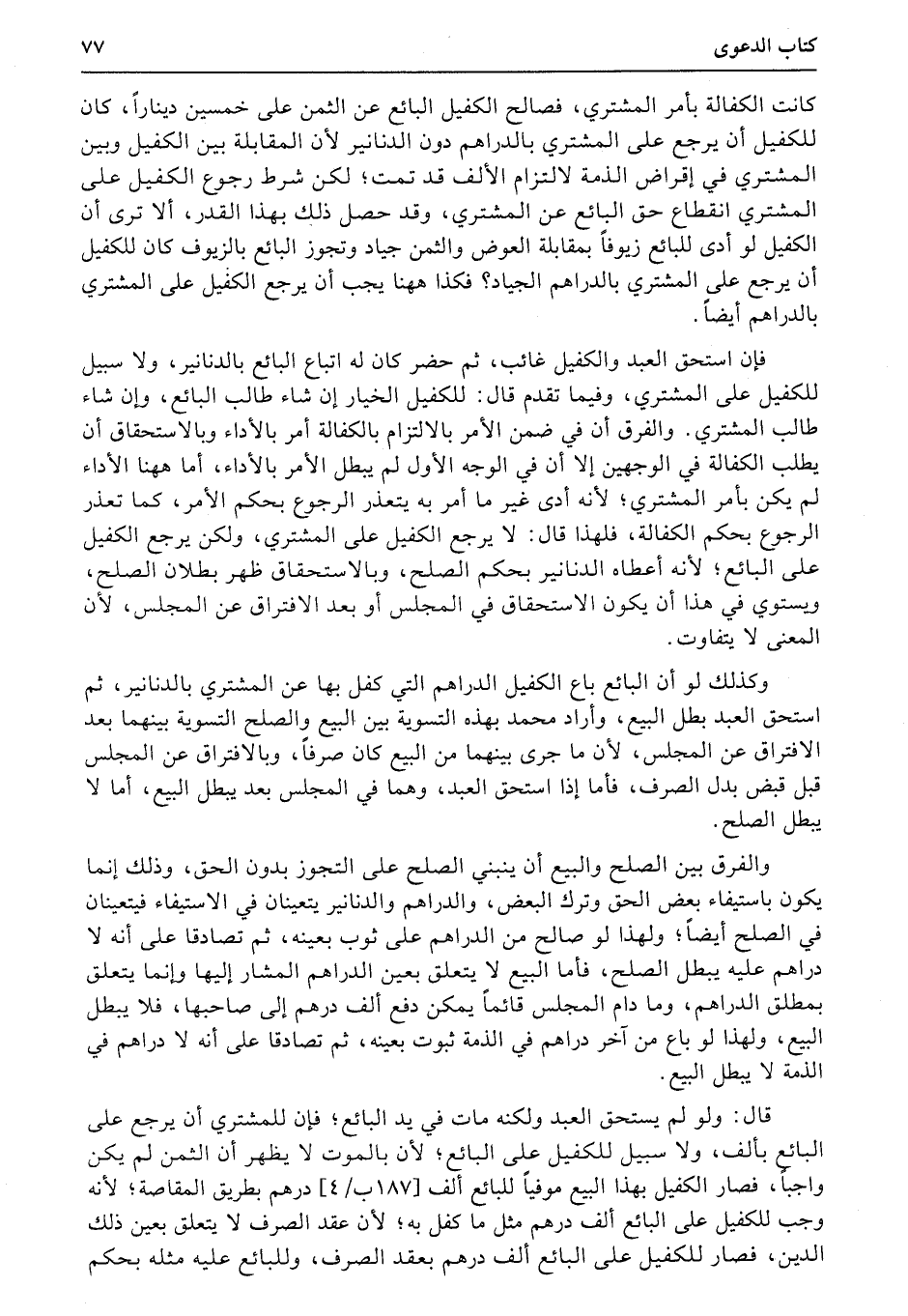 وكذلك لو أن البائع باع الكفيل الدراهم التي كفل بها عن المشتري بالدنانير، ثم استحق العبد بطل البيع، وأراد محمد بهذه التسوية بين البيع والصلح التسوية بينهما بعد الافتراق عن المجلس، لأن ما جرى بينهما من البيع كان صرفاً، وبالافتراق عن المجلس قبل قبض بدل الصرف، فأما إذا استحق العبد، وهما في المجلس بعد يبطل البيع، أما لا يبطل الصلح.