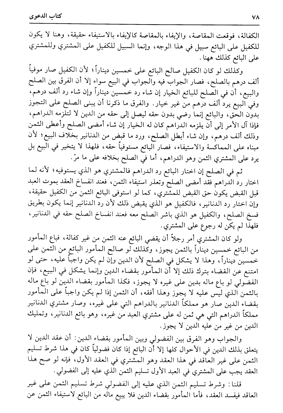 ثم في الصلح إن اختار البائع رد الدراهم فالمشتري هو الذي يستوفيه؛ لأنه لما اختار رد الدراهم فقد أمضى الصلح وتعذر استيفاء الثمن، فعند انفساخ العقد بموت العبد قبل القبض يكون حق القبض للمشتري، كما لو استوفى البائع الثمن من الكفيل حقيقة، وإن اختار رد الدنانير، فالكفيل هو الذي يقبض ذلك لأن رد الدنانير إنما يكون بطريق فسخ الصلح، والكفيل هو الذي باشر الصلح معه فعند انفساخ الصلح حقه في الدنانير، فلهذا لم يكن له رجوع على المشتري.