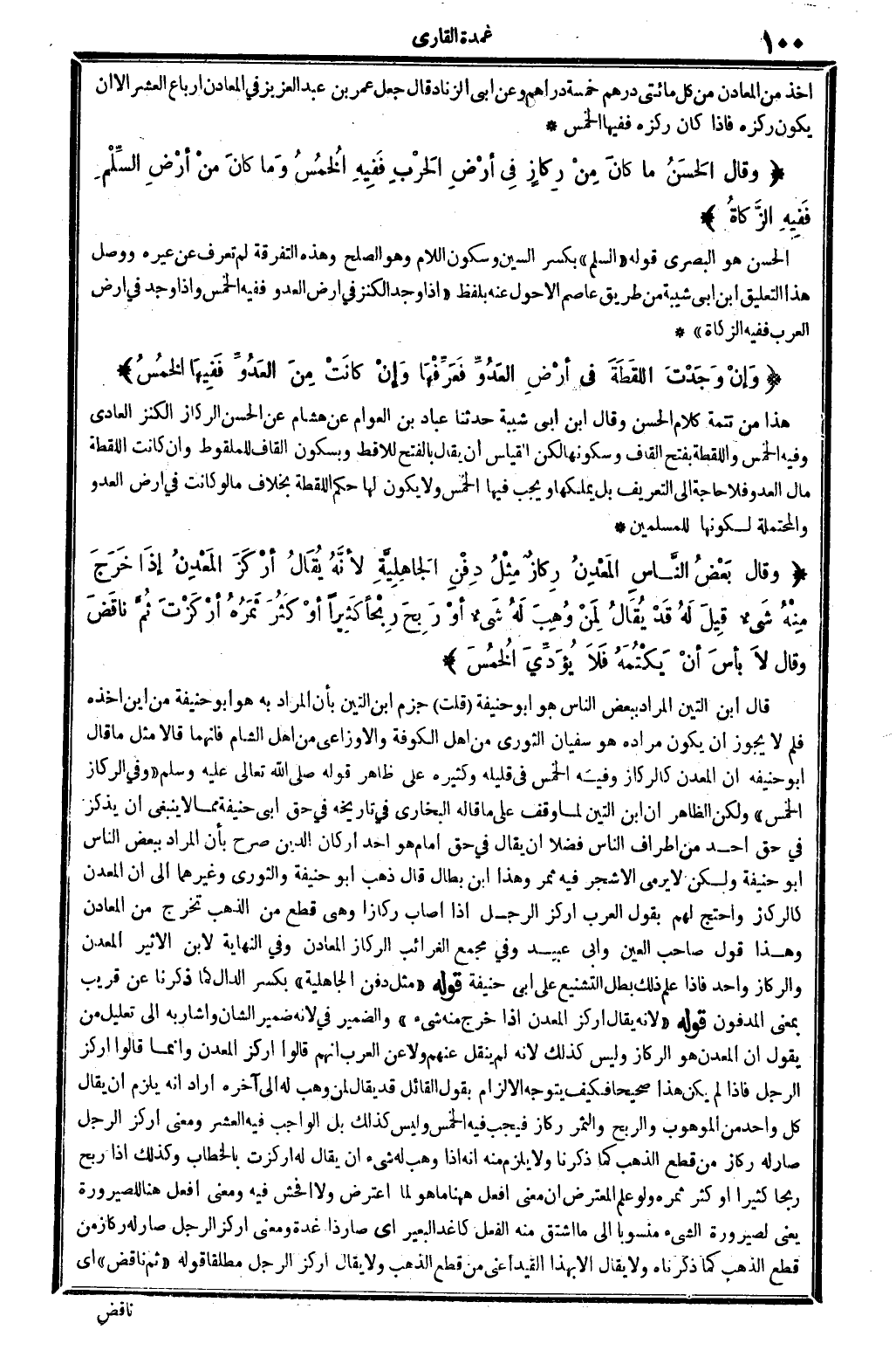 قَالَ ابْن التِّين: المُرَاد بِبَعْض النَّاس هُوَ أَبُو حنيفَة. قلت: جزم ابْن التِّين بِأَن المُرَاد بِهِ هُوَ أَبُو حنيفَة من أَيْن أَخذه فَلم لَا يجوز أَن يكون مُرَاده هُوَ سُفْيَان الثَّوْريّ من أهل الْكُوفَة، وَالْأَوْزَاعِيّ من أهل الشَّام، فَإِنَّهُمَا قَالَا مثل مَا قَالَ أَبُو حنيفَة: أَن الْمَعْدن كالركاز وَفِيه الْخمس فِي قَلِيله وَكَثِيره، على ظَاهر قَوْله، صلى الله عَلَيْهِ وَسلم: (وَفِي الرِّكَاز الْخمس) ، وَلَكِن الظَّاهِر أَن ابْن التِّين لما وقف على مَا قَالَه البُخَارِيّ فِي (تَارِيخه) فِي حق أبي حنيفَة مِمَّا لَا يَنْبَغِي أَن يذكر فِي حق أحد من أَطْرَاف النَّاس، فضلا أَن يُقَال فِي حق إِمَام هُوَ أحد أَرْكَان الدّين، صرح بِأَن المُرَاد بِبَعْض النَّاس أَبُو حنيفَة، وَلَكِن لَا يرْمى إلاَّ شجر فِيهِ ثَمَر، وَهَذَا ابْن بطال قَالَ: ذهب أَبُو حنيفَة وَالثَّوْري وَغَيرهمَا إِلَى أَن الْمَعْدن كالركاز، وَاحْتج لَهُم بقول الْعَرَب: أركز الرجل إِذا أصَاب ركازا، وَهِي قطع من الذَّهَب تخرج من الْمَعَادِن، وَهَذَا قَول صَاحب الْعين، وَأبي عبيد. وَفِي (مجمع الغرائب) : الرِّكَاز الْمَعَادِن. وَفِي (النِّهَايَة) : لِابْنِ الْأَثِير: الْمَعْدن والركاز وَاحِد، فَإِذا علم ذَلِك بَطل التشنيع على أبي حنيفَة.