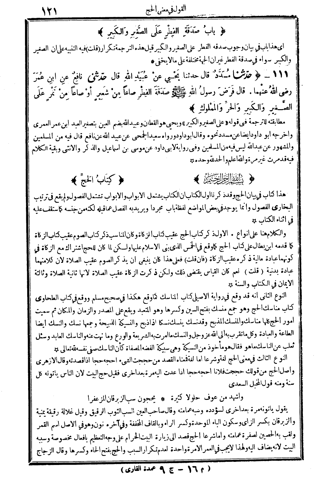 هَذَا كتاب فِي بَيَان الْحَج، وَقد ذكرنَا أول الْكتاب أَن الْكتاب يشْتَمل الْأَبْوَاب، والأبواب تَشْمَل الْفُصُول، وَلم يَقع فِي تَرْتِيب البُخَارِيّ الْفُصُول، وَإِنَّمَا يُوجد فِي بعض الْمَوَاضِع لَفْظَة: بَاب، مُجَردا وَيُرِيد بِهِ الْفَصْل عَمَّا قبله، لكنه من جنسه كَمَا ستقف عَلَيْهِ فِي أثْنَاء الْكتاب.