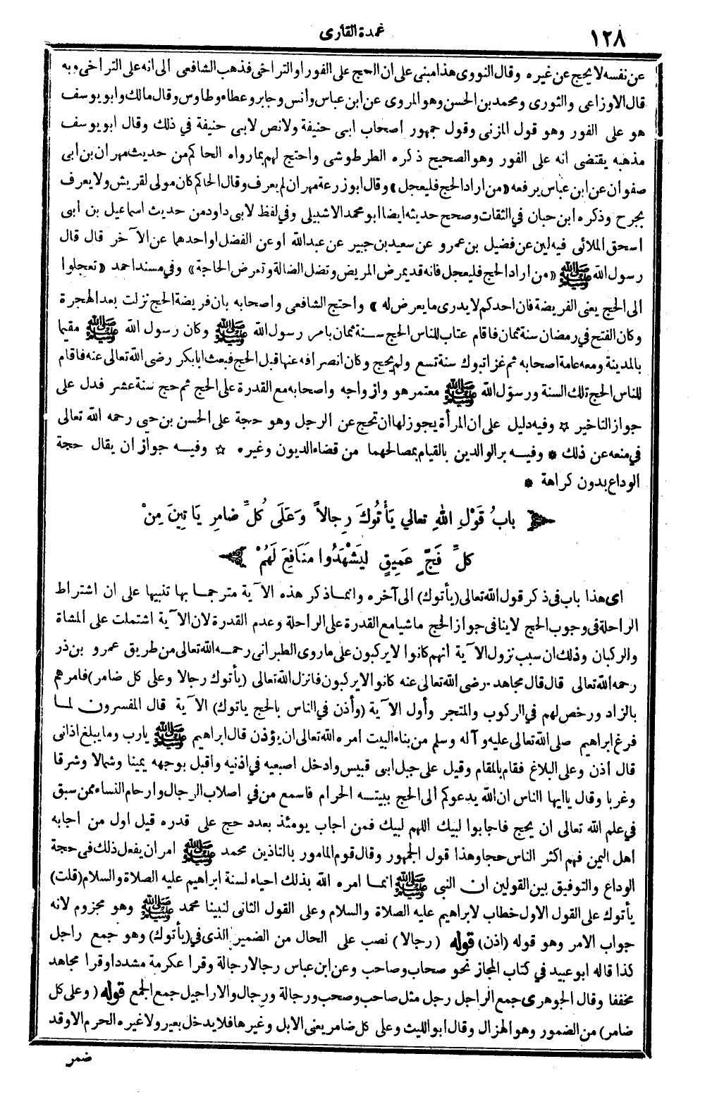 2 - (بابُ قَوْلِ الله تَعَالَى {يأتُوكَ رِجَالاً وَعَلَى كُلِّ ضَامِرِ يَأتِينَ مِنْ كُلِّ فَجٍّ عَمِيقٍ لِيَشْهَدُوا مَنافِعَ لَهُمْ} (الْحَج: 72) .)