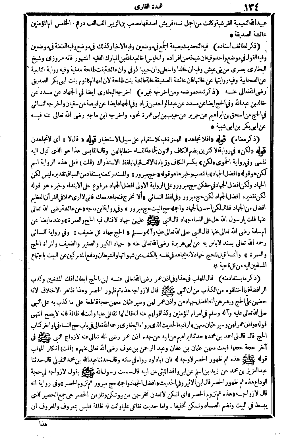 ذكر مَعْنَاهُ: قَوْله: (أَفلا نجاهد؟) الْهمزَة فِيهِ للاستفهام على سَبِيل الإستخبار. قَوْله: (قَالَ: لَا) ، أَي: لَا تجاهدن، قَوْله: (لَكِن) ، فِي رِوَايَة الْأَكْثَرين بِضَم الْكَاف وَالنُّون لجَماعَة النِّسَاء خطابا لَهُنَّ، وَقَالَ الْقَابِسِيّ: هَذَا هُوَ الَّذِي تميل إِلَيْهِ نَفسِي، وَفِي رِوَايَة الْحَمَوِيّ: (وَلَكِن) ، بِكَسْر الْكَاف وَزِيَادَة الْألف قبلهَا بِلَفْظ الِاسْتِدْرَاك. قلت: فعلى هَذِه الرِّوَايَة اسْم لَكِن هُوَ قَوْله: (أفضل الْجِهَاد) بِالنّصب وخبرها هُوَ قَوْله: (حج مبرور) ، والمستدرك مِنْهُ يُسْتَفَاد من السِّيَاق تَقْدِيره: لَيْسَ لَكِن الْجِهَاد وَلَكِن أفضل الْجِهَاد فِي حقكن حج مبرور، وعَلى الرِّوَايَة الأولى: أفضل الْجِهَاد مَرْفُوع على الِابْتِدَاء وَخَبره هُوَ قَوْله: لَكِن، تَقْدِيره: أفضل الْجِهَاد لَكِن حج مبرور، وَفِي لفظ النَّسَائِيّ: (أَلا نخرج فنجاهد مَعَك؟ . . فَإِنِّي لَا أرى عملا فِي الْقُرْآن الْعَظِيم أفضل من الْجِهَاد؟ فَقَالَ: لَكِن أحسن الْجِهَاد وأجمله حج الْبَيْت حج مبرور) . وَفِي رِوَايَة ابْن مَاجَه: (عَن عَائِشَة رَضِي الله تَعَالَى عَنْهَا، قلت: يَا رَسُول الله! هَل على النِّسَاء جِهَاد؟ قَالَ النَّبِي صلى الله عَلَيْهِ وَسلم: عَلَيْهِنَّ جِهَاد لَا قتال فِيهِ: الْحَج وَالْعمْرَة) . وَعِنْده أَيْضا عَن أم سَلمَة، رَضِي الله تَعَالَى عَنْهَا، قَالَ النَّبِي، صلى الله عَلَيْهِ وَسلم: (الْحَج جِهَاد كل ضَعِيف) . وَفِي رِوَايَة النَّسَائِيّ رَحمَه الله تَعَالَى، بِسَنَد لَا بَأْس بِهِ عَن أبي هُرَيْرَة، رَضِي الله تَعَالَى عَنهُ: (جِهَاد الْكَبِير وَالصَّغِير والضعيف وَالْمَرْأَة: الْحَج وَالْعمْرَة) . وَإِنَّمَا قيل لِلْحَجِّ جِهَاد لِأَنَّهُ يُجَاهد فِي نَفسه بالكف عَن شهواتها والشيطان وَدفع الْمُشْركين عَن الْبَيْت باجتماع الْمُسلمين إِلَيْهِ من كل نَاحيَة.