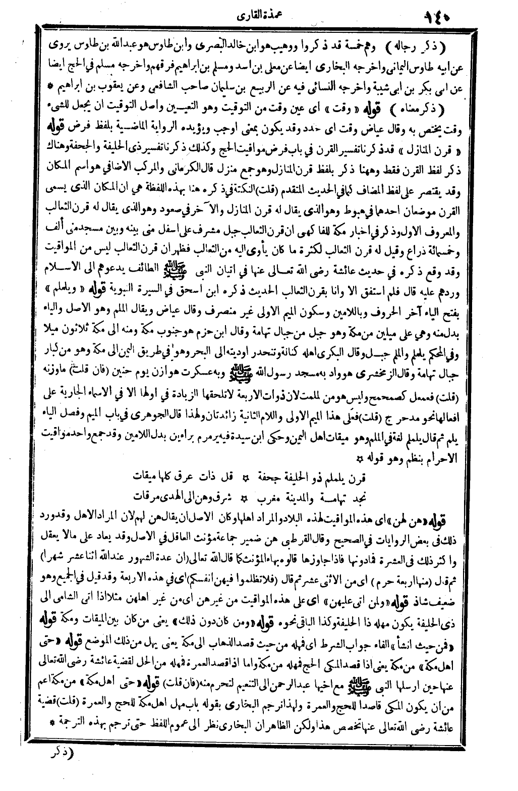 (قرنَ يلملمُ ذُو الحليفة جحفةٌ ... قل: ذاتُ عرقٍ كلُّها مِيقَات)