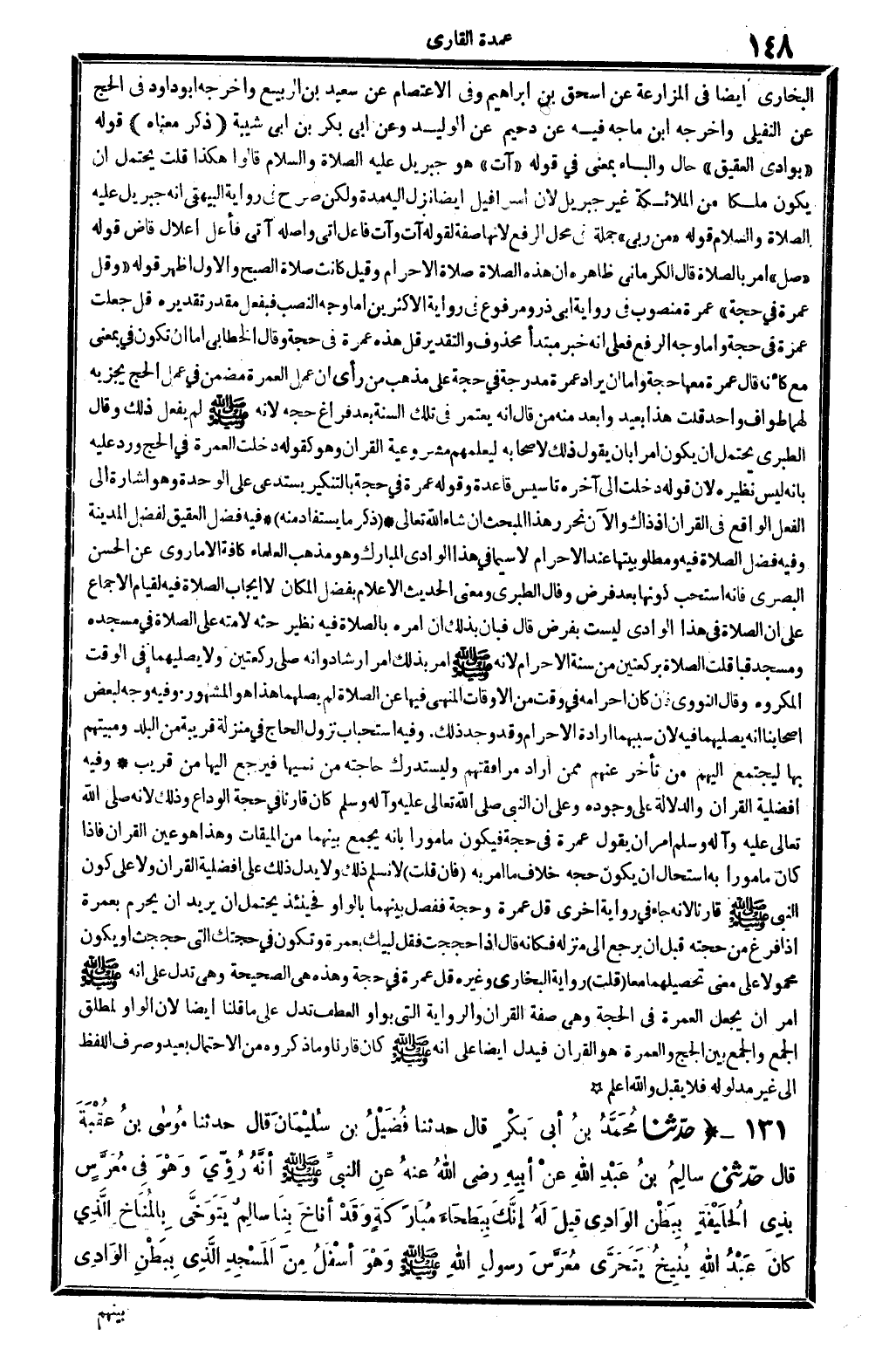 5351 - حدَّثنا مُحَمَّدُ بنُ أبي بَكْرٍ قَالَ حدَّثنا فُضَيْلُ بنُ سُلَيْمَانَ قَالَ حدَّثنا مُوسى بنُ عُقْبَةَ قَالَ حدَّثني سالِمُ بنُ عَبْدِ الله عنْ أبِيهِ رَضِي الله تَعَالَى عنهُ عنِ النبيِّ صلى الله عَلَيْهِ وَسلم أنَّهُ رُؤِيَ وهْوَ فِي مُعَرَّسٍ بذِي الحُلَيْفَةِ بِبَطنِ الوادِي قِيلَ لهُ إنَّكَ بِبَطْحَاءَ مُبَاركَةٍ وقَدْ أنَاخَ بِنَا سالِمٌ يَتَوَخَّى بِالمُنَاخِ الَّذِي كانَ عَبْدُ الله يُنِيخُ يَتَحَرَّى مُعَرَّسَ رسولِ الله صلى الله عَلَيْهِ وَسلم وَهْوَ أسْفَلُ مِنَ المَسْجِدِ الَّذِي بِبَطْنِ الوَادِي