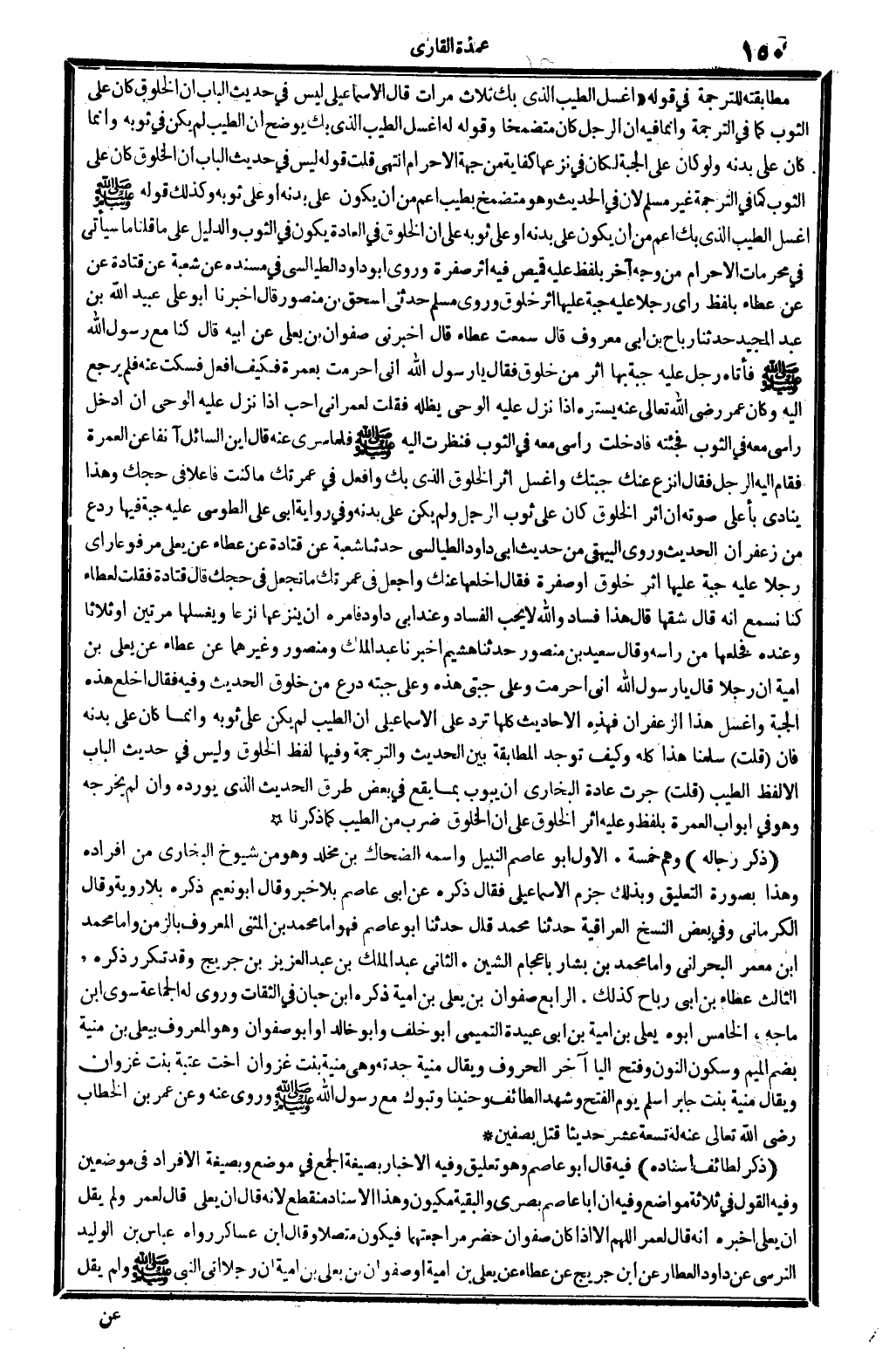 ذكر لطائف إِسْنَاده: فِيهِ: قَالَ أَبُو عَاصِم، وَهُوَ تَعْلِيق. وَفِيه: الْإِخْبَار بِصِيغَة الْجمع فِي مَوضِع وبصيغة الْإِفْرَاد فِي موضِعين. وَفِيه: القَوْل فِي ثَلَاثَة مَوَاضِع. وَفِيه: أَن أَبَا عَاصِم بَصرِي والبقية مكيون، وَهَذَا الْإِسْنَاد مُنْقَطع لِأَنَّهُ قَالَ: إِن يعلى قَالَ لعمر، وَلم يقل إِن يعلى أخبرهُ أَنه قَالَ لعمر، أللهم إلاَّ إِذا كَانَ صَفْوَان حضر مراجعتهما، فَيكون مُتَّصِلا. وَقَالَ ابْن عَسَاكِر: رَوَاهُ عَبَّاس بن الْوَلِيد النَّرْسِي عَن دَاوُد الْعَطَّار عَن ابْن جريج عَن عَطاء عَن يعلى بن أُميَّة، أَو صَفْوَان بن يعلى بن أُميَّة: أَن رجلا أَتَى النَّبِي صلى الله عَلَيْهِ وَسلم، وَلم يقل