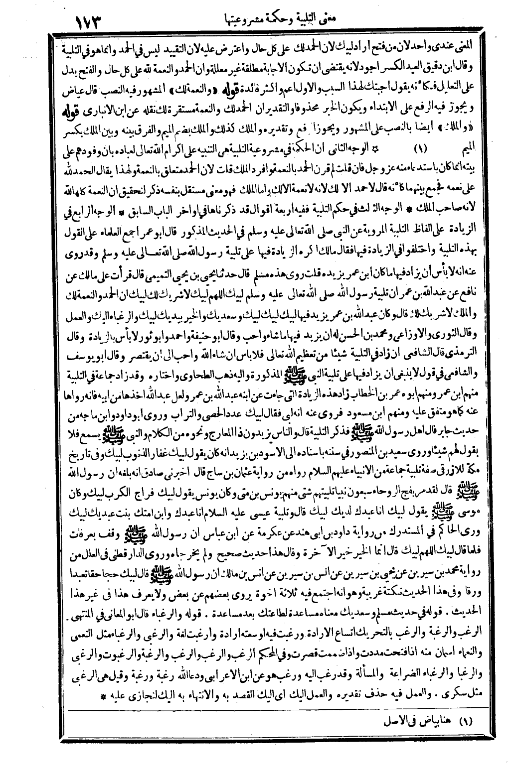 الْوَجْه الثَّانِي: أَن الْحِكْمَة فِي مَشْرُوعِيَّة التَّلْبِيَة هِيَ التَّنْبِيه على إكرام الله تَعَالَى لِعِبَادِهِ، بِأَن وفودهم على بَيته إِنَّمَا كَانَ باستدعاء مِنْهُ، عز وَجل، فَإِن قلت: لِمَ قرن الْحَمد بِالنعْمَةِ وأفرد الْملك؟ قلت: لِأَن الْحَمد مُتَعَلق بِالنعْمَةِ، وَلِهَذَا يُقَال: الْحَمد لله على نعمه، فَجمع بَينهمَا كَأَنَّهُ قَالَ: لَا حمد، إلاَّ لَك، لِأَنَّهُ لَا نعْمَة إلاَّ لَك وَأما الْملك، فَهُوَ معنى مُسْتَقل بِنَفسِهِ، ذكر لتحقيق: أَن النِّعْمَة كلهَا لله لِأَنَّهُ صَاحب الْملك.