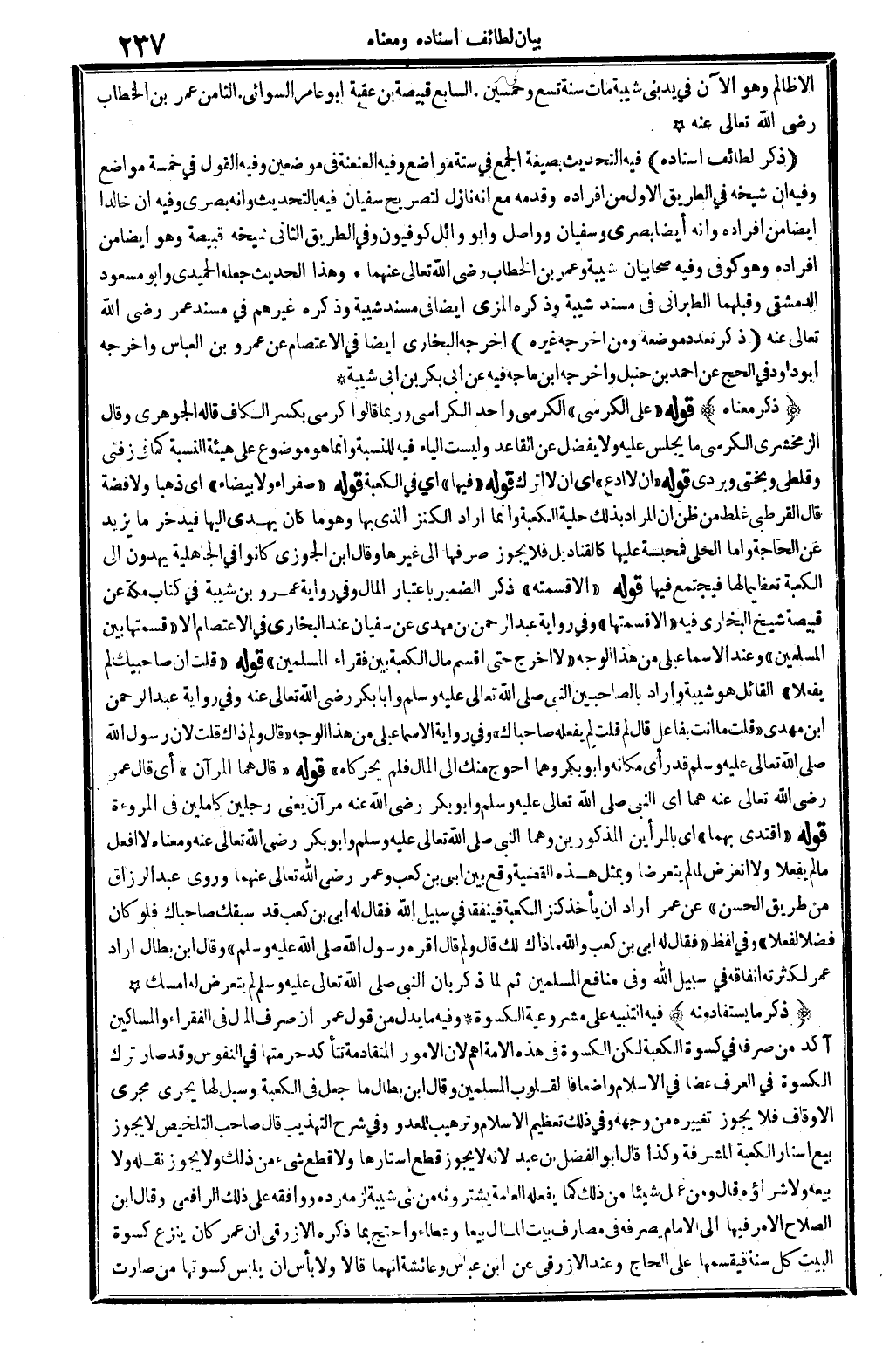 ذكر لطائف إِسْنَاده: فِيهِ: التحديث بِصِيغَة الْجمع فِي سِتَّة مَوَاضِع. وَفِيه: القَوْل فِي خَمْسَة مَوَاضِع. وَفِيه: أَن شَيْخه فِي الطَّرِيق الأول من أَفْرَاده، وَقدمه مَعَ أَنه نَازل لتصريح سُفْيَان فِيهِ بِالتَّحْدِيثِ، وَأَنه بَصرِي. وَفِيه: أَن خَالِدا أَيْضا من أَفْرَاده، وَأَنه أَيْضا بَصرِي وسُفْيَان وواصل وَأَبُو وَائِل كوفيون، وَفِي الطَّرِيق الثَّانِي شَيْخه قبيصَة وَهُوَ أَيْضا من أَفْرَاده، وَهُوَ كُوفِي. وَفِيه: صحابيان شيبَة وَعمر بن الْخطاب، رَضِي الله تَعَالَى عَنْهُمَا. وَهَذَا الحَدِيث جعله الْحميدِي وَأَبُو مَسْعُود الدِّمَشْقِي وقبلهما الطَّبَرَانِيّ فِي مُسْند شيبَة، وَذكره الْمزي أَيْضا فِي مُسْند شيبَة، وَذكره غَيرهم فِي مُسْند عمر، رَضِي الله تَعَالَى عَنهُ.