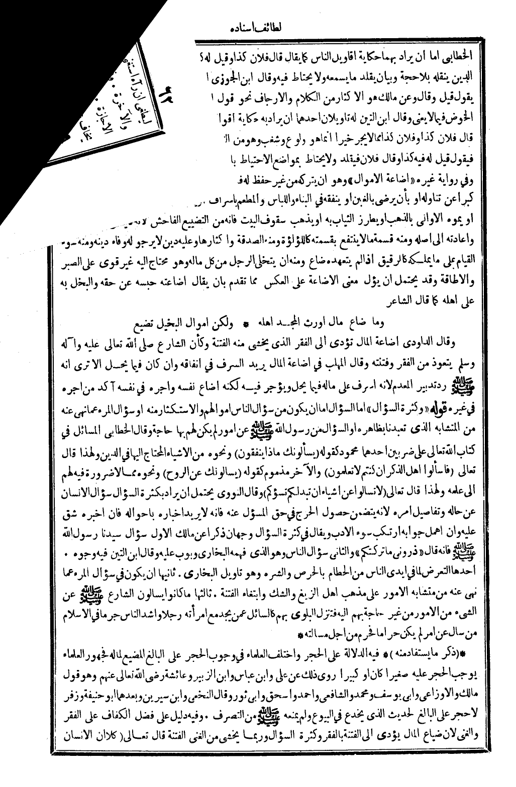 ذكر مَا يُسْتَفَاد مِنْهُ فِيهِ: الدّلَالَة على الْحجر، وَاخْتلف الْعلمَاء فِي وجوب الْحجر على الْبَالِغ المضيع لمَاله، فجمهور الْعلمَاء يُوجب الْحجر عَلَيْهِ صَغِيرا كَانَ أَو كَبِيرا، رُوِيَ ذَلِك عَن عَليّ وَابْن عَبَّاس وَابْن الزبير وَعَائِشَة، رَضِي الله تَعَالَى عَنْهُم، وَهُوَ قَول مَالك وَالْأَوْزَاعِيّ وَأبي يُوسُف وَمُحَمّد وَالشَّافِعِيّ وَأحمد وَإِسْحَاق وَأبي ثَوْر، وَقَالَ النَّخعِيّ وَابْن سِيرِين وبعدهما أَبُو حنيفَة وَزفر: لَا حجر على الْبَالِغ الحَدِيث الَّذِي يخدع فِي الْبيُوع وَلم يمنعهُ صلى الله عَلَيْهِ وَسلم من التَّصَرُّف. وَفِيه: دَلِيل على فضل الكفاف على الْفقر والغنى، لِأَن ضيَاع المَال يُؤَدِّي إِلَى الْفِتْنَة بالفقر وَكَثْرَة السُّؤَال، وَرُبمَا يخْشَى من الْغنى الْفِتْنَة، قَالَ تَعَالَى: {كلا إِن الْإِنْسَان