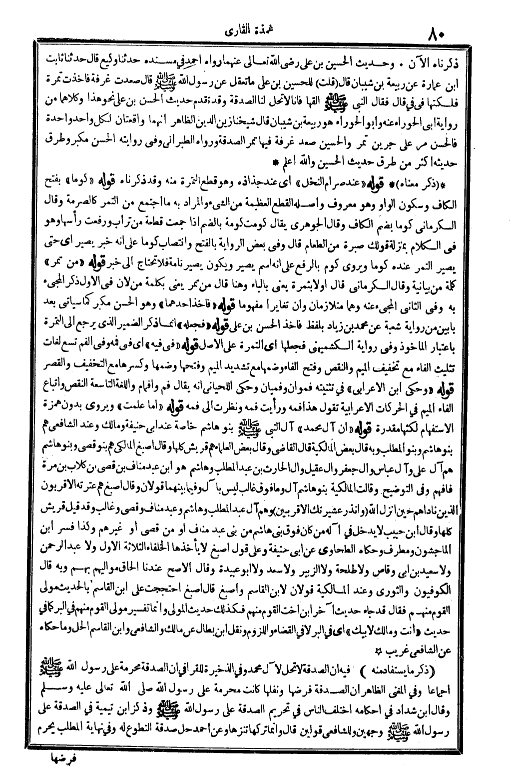 ذكر مَعْنَاهُ: قَوْله: (عِنْد صرام النّخل) أَي: عِنْد جذاذه، وَهُوَ قطع التمرة مِنْهُ، وَقد ذَكرْنَاهُ. قَوْله: (كوما) ، بِفَتْح الْكَاف وَسُكُون الْوَاو، وَهُوَ مَعْرُوف، وَأَصله: الْقطع الْعَظِيمَة من الشَّيْء، وَالْمرَاد بِهِ: مَا اجْتمع من التَّمْر كالصرمة. وَقَالَ الْكرْمَانِي: كوما، بِضَم الْكَاف. وَقَالَ الْجَوْهَرِي: يُقَال: كومت كومة، بِالضَّمِّ: إِذا جمعت قِطْعَة من تُرَاب وَرفعت رَأسهَا، وَهُوَ فِي الْكَلَام بِمَنْزِلَة قَوْلك: صبرَة من الطَّعَام. قَالَ: وَفِي بعض الرِّوَايَة بِالْفَتْح. وانتصاب كوما على أَنه خبر: يصير، أَي: حَتَّى يصير التَّمْر عِنْده كوما ويروى: كوم، بِالرَّفْع على أَنه اسْم: يصير، وَيكون: يصير، تَامَّة فَلَا تحْتَاج إِلَى خبر. قَوْله: (من تمر) كلمة: من، بَيَانِيَّة، وَقَالَ الْكرْمَانِي: قَالَ أَولا بثمرة يَعْنِي بِالْبَاء، وَهنا قَالَ: من تمر، يَعْنِي بِكَلِمَة: من، لِأَن فِي الأول ذكر المجبىء بِهِ، وَفِي الثَّانِي المجىء عَنهُ، وهما متلازمان وَإِن تغايرا مفهوما. قَوْله: (فَأخذ أَحدهمَا) وَهُوَ الْحسن مكبر كَمَا سَيَأْتِي بعد بَابَيْنِ من رِوَايَة شُعْبَة عَن مُحَمَّد بن زِيَاد بِلَفْظ: فَأخذ الْحسن بن عَليّ. قَوْله: (فَجعله) إِنَّمَا ذكّر الضَّمِير الَّذِي يرجع إِلَى: التمرة، بِاعْتِبَار الْمَأْخُوذ، وَفِي رِوَايَة الْكشميهني: فَجَعلهَا، أَي: التمرة على الأَصْل. قَوْله: (فِي فِيهِ) أَي: فِي فَمه، وَفِي الْفَم تسع لُغَات: تثليث الْفَاء مَعَ تَخْفيف الْمِيم وَالنَّقْص وَفتح الْفَاء وَضمّهَا مَعَ تَشْدِيد الْمِيم وَفتحهَا وَضمّهَا وَكسرهَا مَعَ التَّخْفِيف وَالْقصر. قَوْله: وَحكى ابْن الْأَعرَابِي فِي تثنيته: فموان وفميان، وَحكى اللحياني أَنه يُقَال: فَم وأفمام، واللغة التَّاسِعَة: النَّقْص وَاتِّبَاع الْفَاء الْمِيم فِي الحركات الإعرابية، تَقول: هَذَا فَمه، وَرَأَيْت فَمه، وَنظرت إِلَى فَمه. قَوْله: (أما علمت؟) ويروى بِدُونِ همزَة الِاسْتِفْهَام لَكِنَّهَا مقدرَة. قَوْله: (إِن آل مُحَمَّد) آل النَّبِي صلى الله عَلَيْهِ وَسلم بَنو هَاشم خَاصَّة عِنْد أبي حنيفَة وَمَالك، وَعند الشَّافِعِي: هم بَنو هَاشم وَبَنُو الْمطلب، وَبِه قَالَ بعض الْمَالِكِيَّة. قَالَ القَاضِي: وَقَالَ بعض الْعلمَاء: هم قُرَيْش كلهَا. وَقَالَ إصبغ الْمَالِكِي: هم بَنو قصي، وَبَنُو هَاشم هم آل عَليّ، وَآل عَبَّاس وَآل جَعْفَر وَآل عقيل وَآل الْحَارِث بن عبد الْمطلب، وهَاشِم هُوَ ابْن عبد منَاف بن قصي بن كلاب بن مرّة فَافْهَم. وَفِي (التَّوْضِيح) : وَقَالَت الْمَالِكِيَّة: بَنو هَاشم آل، وَمَا فَوق غَالب لَيْسَ بآل، وَفِيمَا بَينهمَا قَولَانِ. وَقَالَ إصبغ: هم عترته الأقربون الَّذين ناداهم حِين أنزل الله {وأنذر عشيرتك الْأَقْرَبين} (الشُّعَرَاء: 412) . وهم آل عبد الْمطلب وهَاشِم وَعبد منَاف وقصي وغالب، وَقد قيل: قُرَيْش كلهَا. وَقَالَ ابْن حبيب: لَا يدْخل فِي آله من كَانَ فَوق بني هَاشم من بني عبد منَاف أَو من قصي أَو غَيرهم، وَكَذَا فسر ابْن الْمَاجشون ومطرف، وَحَكَاهُ الطَّحَاوِيّ عَن أبي حنيفَة. وعَلى قَول إصبغ: لَا يَأْخُذهَا الحلفاء الثَّلَاثَة الأول وَلَا عبد الرَّحْمَن وَلَا سعيد بن أبي وَقاص وَلَا طَلْحَة وَلَا الزبير وَلَا سعد وَلَا أَبُو عُبَيْدَة. وَقَالَ: الْأَصَح عندنَا إِلْحَاق مواليهم بهم، وَبِه قَالَ الْكُوفِيُّونَ وَالثَّوْري، وَعند الْمَالِكِيَّة قَولَانِ لِابْنِ الْقَاسِم وإصبغ. قَالَ إصبغ: احتججت على ابْن الْقَاسِم بِالْحَدِيثِ: مولى الْقَوْم مِنْهُم، فَقَالَ: قد جَاءَ حَدِيث آخر: ابْن أُخْت الْقَوْم مِنْهُم، فَكَذَلِك حَدِيث الْمولى، وَإِنَّمَا تَفْسِير: مولى الْقَوْم مِنْهُم، فِي الْبر كَمَا فِي حَدِيث: (أَنْت وَمَالك لأَبِيك) ، أَي فِي: الْبر لَا فِي الْقَضَاء واللزوم، وَنقل ابْن بطال عَن مَالك وَالشَّافِعِ