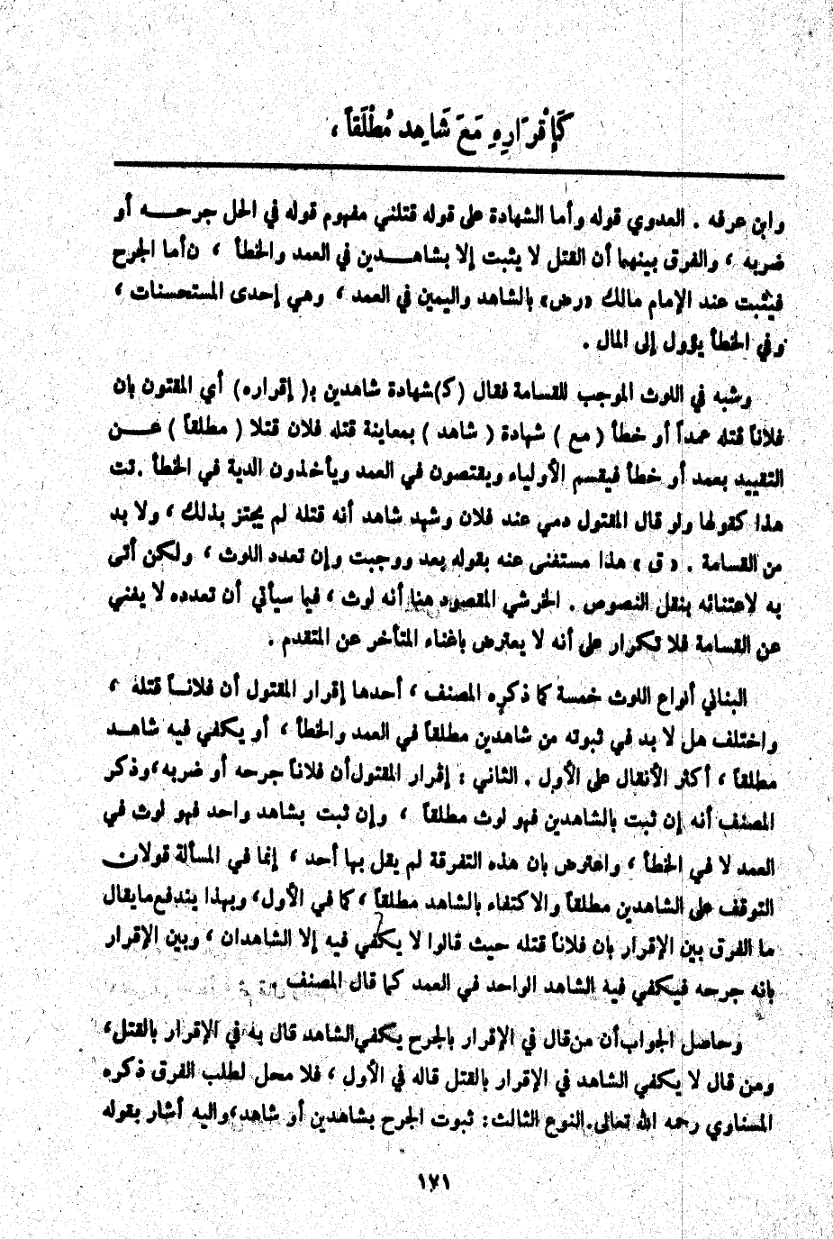 وَحَاصِلُ الْجَوَابِ أَنَّ مَنْ قَالَ فِي الْإِقْرَارِ بِالْجُرْحِ يَكْفِي الشَّاهِدُ قَالَ بِهِ فِي الْإِقْرَارِ بِالْقَتْلِ، وَمَنْ قَالَ لَا يَكْفِي الشَّاهِدُ فِي الْإِقْرَارِ بِالْقَتْلِ قَالَهُ فِي الْأَوَّلِ، فَلَا مَحَلَّ لِطَلَبِ الْفَرْقِ ذَكَرَهُ الْمِسْنَاوِيُّ - رَحِمَهُ اللَّهُ تَعَالَى -.