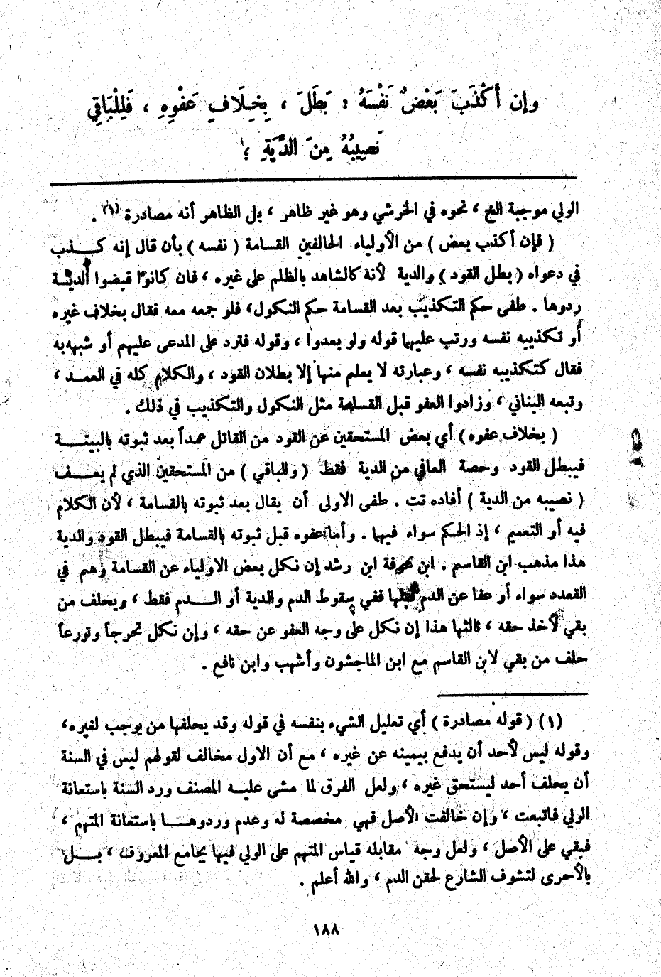 (فَإِنْ أَكْذَبَ بَعْضٌ) مِنْ الْأَوْلِيَاءِ الْحَالِفِينَ الْقَسَامَةَ (نَفْسَهُ) بِأَنْ قَالَ إنَّهُ كَذَبَ فِي دَعْوَاهُ (بَطَلَ الْقَوَدُ) وَالدِّيَةُ لِأَنَّهُ كَالشَّاهِدِ بِالظُّلْمِ عَلَى غَيْرِهِ، فَإِنْ كَانُوا قَبَضُوا الدِّيَةَ رَدُّوهَا. طفي حُكْمُ التَّكْذِيبِ بَعْدَ الْقَسَامَةِ حُكْمُ النُّكُولِ، فَلَوْ جَمَعَهُ مَعَهُ فَقَالَ بِخِلَافِ غَيْرِهِ أَوْ تَكْذِيبِهِ نَفْسَهُ وَرَتَّبَ عَلَيْهِمَا قَوْلَهُ وَلَوْ بَعُدُوا، وَقَوْلُهُ فَتَرُدُّ عَلَى الْمُدَّعَى عَلَيْهِمْ أَوْ شَبَّهَهُ بِهِ فَقَالَ كَتَكْذِيبِهِ نَفْسَهُ، وَعِبَارَتُهُ لَا يُعْلَمُ مِنْهَا إلَّا بُطْلَانُ الْقَوَدِ، وَالْكَلَامُ كُلُّهُ فِي الْعَمْدِ، وَتَبِعَهُ الْبُنَانِيُّ، وَزَادُوا الْعَفْوَ قَبْلَ الْقَسَامَةِ مِثْلَ النُّكُولِ وَالتَّكْذِيبِ فِي ذَلِكَ.