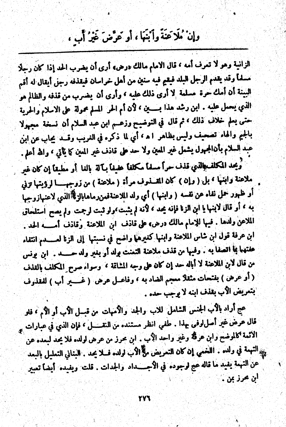 ـــــــــــــــــــــــــــــQالزَّانِيَةِ وَهُوَ لَا تُعْرَفُ أُمُّهُ، قَالَ الْإِمَامُ مَالِكٌ " - رَضِيَ اللَّهُ عَنْهُ - " أَرَى أَنْ يُضْرَبَ الْحَدَّ إذَا كَانَ رَجُلًا مُسْلِمًا وَقَدْ يَقْدَمُ الرَّجُلُ الْبَلَدَ فَيُقِيمُ فِيهِ سِنِينَ مِنْ أَهْلِ خُرَاسَانَ فَيَقْذِفُهُ رَجُلٌ أَيُقَالُ لَهُ أَقِمْ الْبَيِّنَةَ أَنَّ أُمَّك حُرَّةٌ مُسْلِمَةٌ لَا أَرَى ذَلِكَ عَلَيْهِ، وَأَرَى أَنْ يُضْرَبَ مَنْ قَذَفَهُ وَالظَّالِمُ هُوَ الَّذِي يَحْمِلُ عَلَيْهِ. ابْنُ رُشْدٍ هَذَا بَيِّنٌ لِأَنَّ أُمَّ الْحُرِّ الْمُسْلِمِ مَحْمُولَةٌ عَلَى الْإِسْلَامِ وَالْحُرِّيَّةِ حَتَّى يُعْلَمَ خِلَافُ ذَلِكَ، ثُمَّ قَالَ فِي التَّوْضِيحِ وَزَعَمَ ابْنُ عَبْدِ السَّلَامِ أَنَّ نَسْخَهُ مَجْهُولٌ بِالْجِيمِ وَالْهَاءِ تَصْحِيفٌ وَلَيْسَ بِظَاهِرٍ. اهـ. أَيْ لِمَا ذَكَرَهُ فِي الْغَرِيبِ وَقَدْ يُجَابُ عَنْ ابْنِ عَبْدِ السَّلَامِ بِأَنَّ الْمَجْهُولَ يَشْمَلُ غَيْرَ الْمُعَيَّنِ وَلَا حَدَّ عَلَى قَاذِفِ غَيْرِ الْمُعَيَّنِ كَمَا يَأْتِي، وَاَللَّهُ أَعْلَمُ.