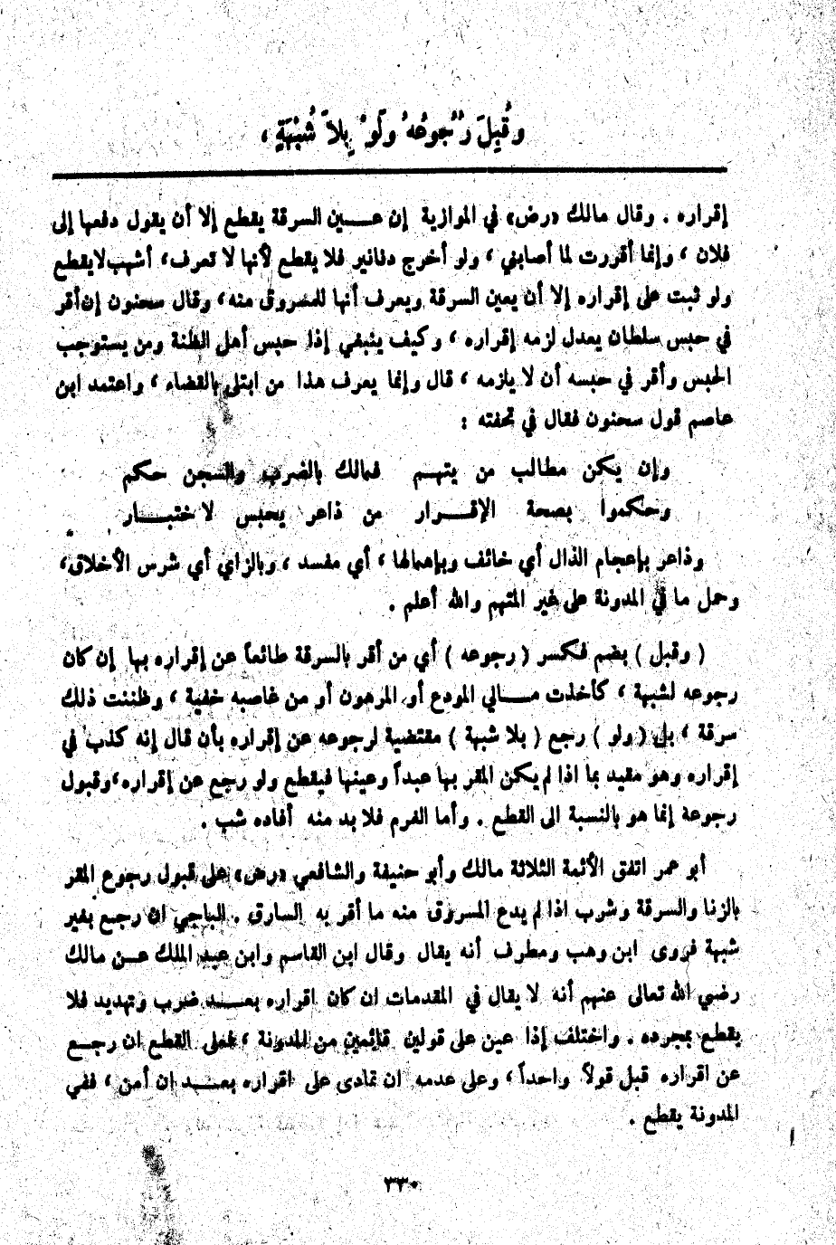 ـــــــــــــــــــــــــــــQإقْرَارِهِ. وَقَالَ مَالِكٌ " - رَضِيَ اللَّهُ عَنْهُ - " فِي الْمَوَّازِيَّةِ إنْ عَيَّنَ السَّرِقَةَ يُقْطَعُ إلَّا أَنْ يَقُولَ دَفَعَهَا إلَيَّ فُلَانٌ، وَإِنَّمَا أَقْرَرْت لِمَا أَصَابَنِي، وَلَوْ أَخْرَجَ دَنَانِيرَ فَلَا يُقْطَعُ لِأَنَّهَا لَا تُعْرَفُ أَشْهَبُ لَا يُقْطَعُ وَلَوْ ثَبَتَ عَلَى إقْرَارِهِ إلَّا أَنْ يُعَيِّنَ السَّرِقَةَ وَيَعْرِفَ أَنَّهَا لِلْمَسْرُوقِ مِنْهُ، وَقَالَ سَحْنُونٌ إنْ أَقَرَّ فِي حَبْسِ سُلْطَانٍ يَعْدِلُ لَزِمَهُ إقْرَارُهُ، وَكَيْفَ يَنْبَغِي إذَا حَبَسَ أَهْلَ الظِّنَّةِ وَمَنْ يَسْتَوْجِبُ الْحَبْسَ وَأَقَرَّ فِي حَبْسِهِ أَنْ لَا يَلْزَمَهُ، قَالَ وَإِنَّمَا يَعْرِفُ هَذَا مَنْ اُبْتُلِيَ بِالْقَضَاءِ، وَاعْتَمَدَ ابْنُ عَاصِمٍ قَوْلَ سَحْنُونٍ فَقَالَ فِي تُحْفَتِهِ: