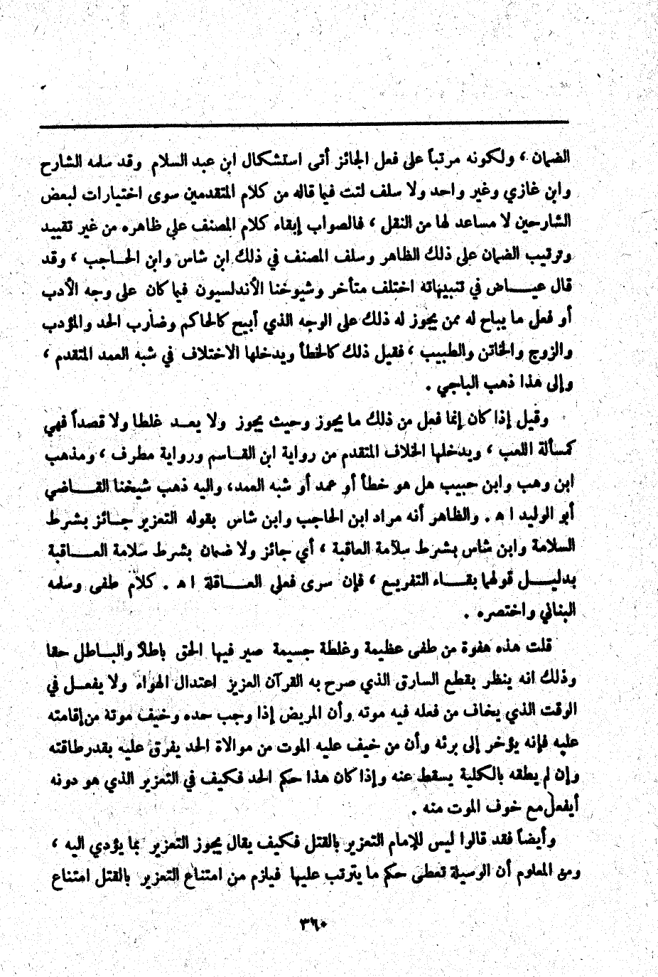 وَقَدْ قَالَ عِيَاضٌ فِي تَنْبِيهَاتِهِ اخْتَلَفَ مُتَأَخِّرُو شُيُوخِنَا الْأَنْدَلُسِيُّونَ فِيمَا كَانَ عَلَى وَجْهِ الْأَدَبِ أَوْ فَعَلَ مَا يُبَاحُ لَهُ مِمَّنْ يَجُوزُ لَهُ ذَلِكَ عَلَى الْوَجْهِ الَّذِي أُبِيحَ كَالْحَاكِمِ وَضَارِبِ الْحَدِّ وَالْمُؤَدِّبِ وَالزَّوْجِ وَالْخَاتِنِ وَالطَّبِيبِ، فَقِيلَ ذَلِكَ كَالْخَطَأِ وَيَدْخُلُهَا الِاخْتِلَافُ فِي شِبْهِ الْعَمْدِ الْمُتَقَدِّمِ، وَإِلَى هَذَا ذَهَبَ الْبَاجِيَّ. وَقِيلَ إذَا كَانَ إنَّمَا فَعَلَ مِنْ ذَلِكَ مَا يَجُوزُ وَحَيْثُ يَجُوزُ وَلَا يُعَدُّ غَلَطًا وَلَا قَصْدًا فَهِيَ كَمَسْأَلَةِ اللَّعِبِ، وَيَدْخُلُهَا الْخِلَافُ الْمُتَقَدِّمُ مِنْ رِوَايَةِ ابْنِ الْقَاسِمِ وَرِوَايَةِ مُطَرِّفٍ، وَمَذْهَبُ ابْنِ وَهْبٍ وَابْنِ حَبِيبٍ هَلْ هُوَ خَطَأٌ أَوْ عَمْدٌ أَوْ شِبْهُ الْعَمْدِ، وَإِلَيْهِ ذَهَبَ شَيْخُنَا الْقَاضِي أَبُو الْوَلِيدِ اهـ. وَالظَّاهِرُ أَنَّهُ مُرَادُ ابْنِ الْحَاجِبِ وَابْنِ شَاسٍ بِقَوْلِهِ التَّعْزِيرُ جَائِزٌ بِشَرْطِ السَّلَامَةِ وَابْنُ شَاسٍ بِشَرْطِ سَلَامَةِ الْعَاقِبَةِ، أَيْ جَائِزٌ وَلَا ضَمَانَ بِشَرْطِ سَلَامَةِ الْعَاقِبَةِ بِدَلِيلِ قَوْلِهِمَا بَقَاءُ التَّفْرِيعِ، فَإِنْ سَرَى فَعَلَى الْعَاقِلَةِ اهـ. كَلَامُ طفي وَسَلَّمَهُ الْبُنَانِيُّ وَاخْتَصَرَهُ.