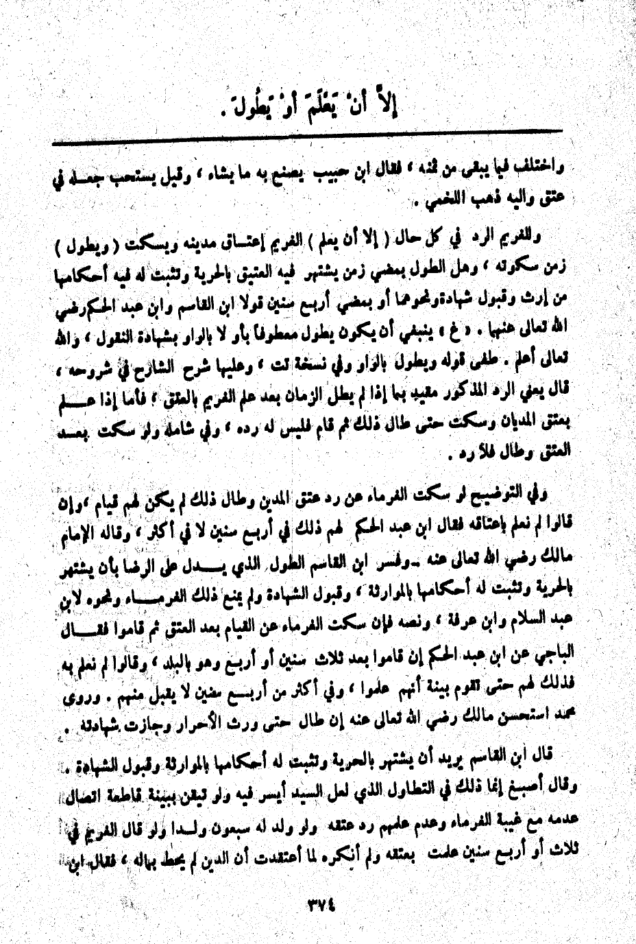 إلَّا أَنْ يَعْلَمَ وَيَطُولَ.