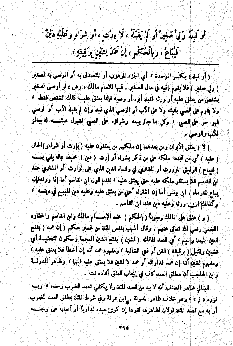 ـــــــــــــــــــــــــــــQ (أَوْ قَبِلَهُ) بِكَسْرِ الْمُوَحَّدَةِ، أَيْ الْجُزْءَ الْمَوْهُوبَ أَوْ الْمُتَصَدَّقَ بِهِ أَوْ الْمُوصَى بِهِ لِصَغِيرٍ (وَلِيٌّ صَغِيرٌ) فَلَا يُقَوَّمُ بَاقِيهِ فِي مَالِ الصَّغِيرِ. فِيهَا لِلْإِمَامِ مَالِكٍ " - رَضِيَ اللَّهُ عَنْهُ - " لَوْ أَوْصَى لِصَغِيرٍ بِشِقْصِ مَنْ يَعْتِقُ عَلَيْهِ أَوْ وَرِثَهُ فَقَبِلَهُ أَبُوهُ أَوْ وَصِيُّهُ فَإِنَّمَا يَعْتِقُ عَلَيْهِ ذَلِكَ الشِّقْصُ فَقَطْ، وَلَا يُقَوَّمُ عَلَى الصَّبِيِّ بَقِيَّتُهُ وَلَا عَلَى الْأَبِ أَوْ الْوَصِيُّ الَّذِي قَبِلَهُ وَإِنْ لَمْ يَقْبَلْهُ الْأَبُ أَوْ الْوَصِيُّ فَهُوَ حُرٌّ عَلَى الصَّبِيِّ وَكُلُّ مَا جَازَ بَيْعُهُ وَشِرَاؤُهُ عَلَى الصَّبِيِّ فَقَبُولُ هِبَتِهِ لَهُ جَائِزٌ لِلْأَبِ وَالْوَصِيِّ.