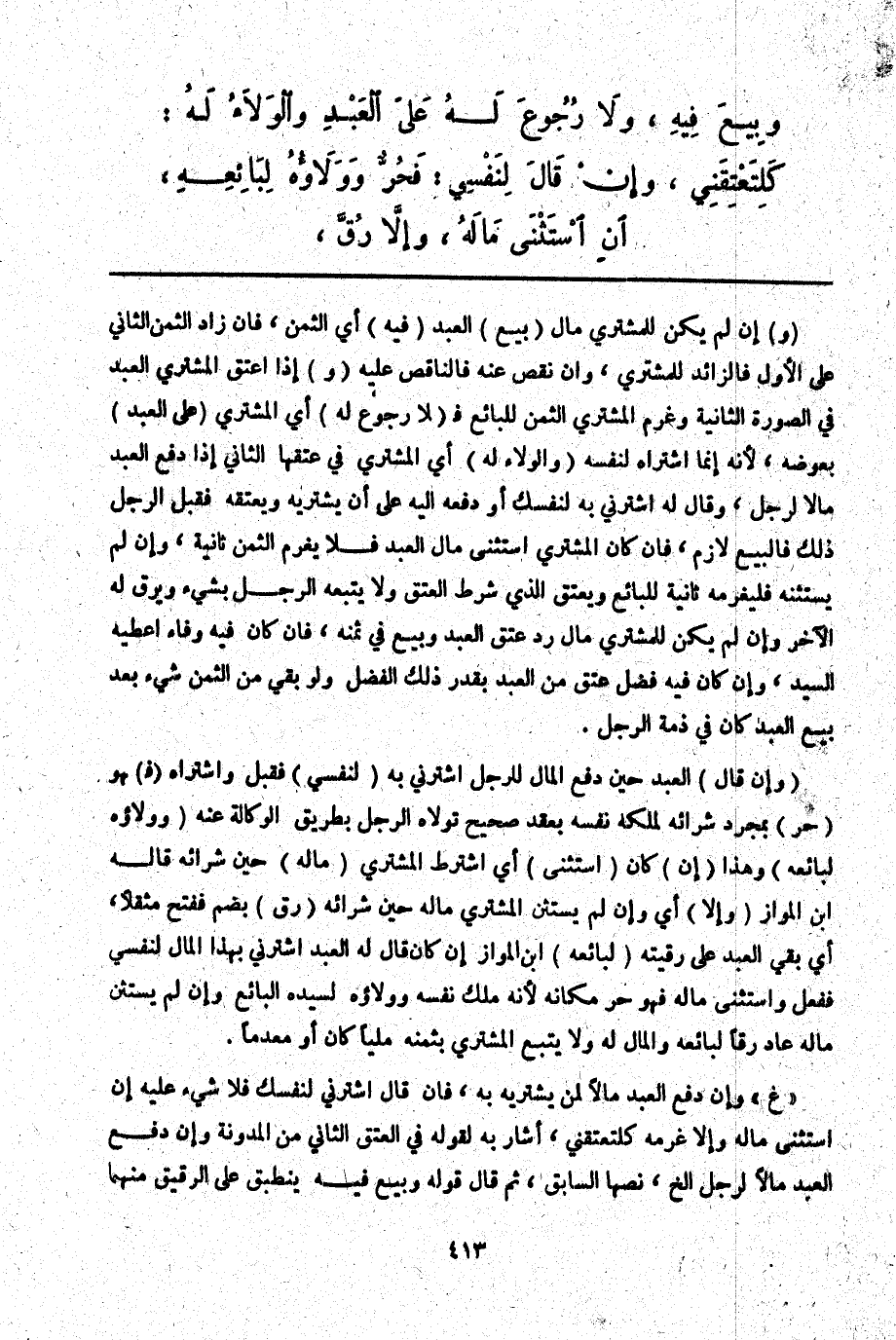 وَبِيعَ فِيهِ، وَلَا رُجُوعَ لَهُ عَلَى الْعَبْدِ وَالْوَلَاءُ لَهُ: كَلِتَعْتِقَنِي
