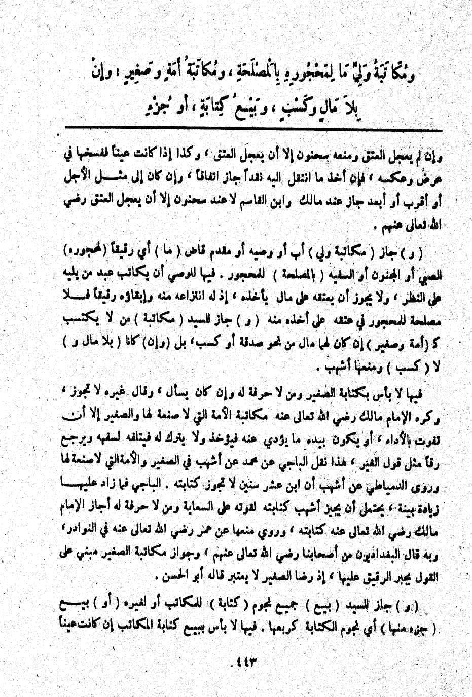 وَبَيْعُ كِتَابَةٍ، أَوْ جُزْءٍ