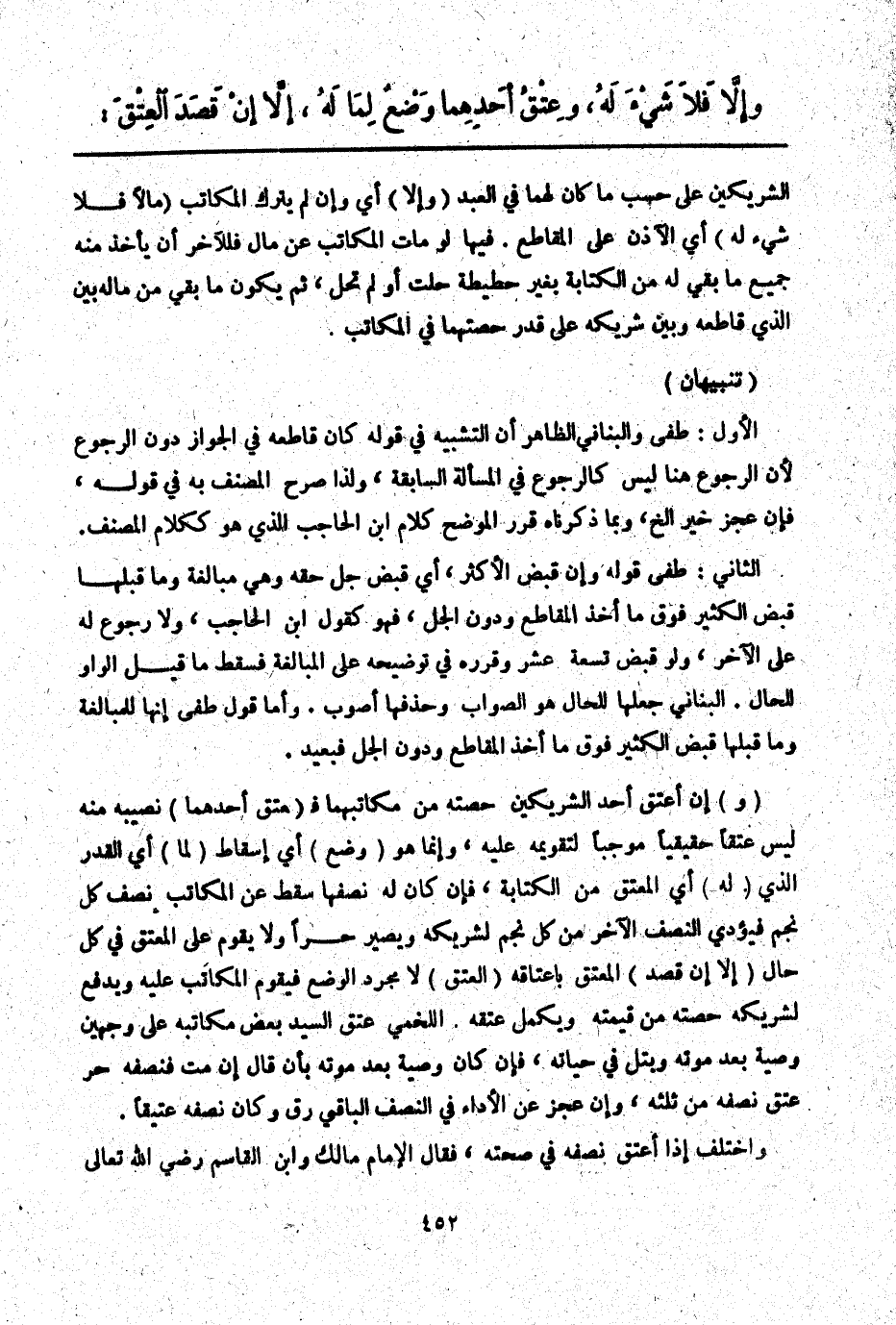الثَّانِي: طفي قَوْلُهُ: وَإِنْ قَبَضَ الْأَكْثَرَ، أَيْ قَبَضَ جُلَّ حَقِّهِ، وَهِيَ مُبَالَغَةٌ، وَمَا قَبْلَهَا قَبَضَ الْكَثِيرَ فَوْقَ مَا أَخَذَ الْمُقَاطِعُ وَدُونَ الْجُلِّ، فَهُوَ كَقَوْلِ ابْنِ الْحَاجِبِ، وَلَا رُجُوعَ لَهُ عَلَى الْآخَرِ، وَلَوْ قَبَضَ تِسْعَةَ عَشَرَ وَقَرَّرَهُ فِي تَوْضِيحِهِ عَلَى الْمُبَالَغَةِ فَسَقَطَ مَا قِيلَ الْوَاوُ لِلْحَالِ. الْبُنَانِيُّ جَعْلُهَا لِلْحَالِ هُوَ الصَّوَابُ وَحَذْفُهَا أَصْوَبُ. وَأَمَّا قَوْلُ طفي إنَّهَا لِلْمُبَالَغَةِ وَمَا قَبْلَهَا قَبَضَ الْكَثِيرَ فَوْقَ مَا أَخَذَ الْمُقَاطِعُ وَدُونَ الْجُلِّ فَبَعِيدٌ.