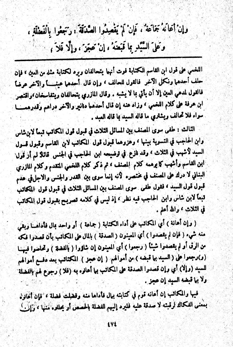 (وَإِنْ أَعَانَهُ) أَيْ الْمُكَاتَبَ عَلَى أَدَاءِ الْكِتَابَةِ (جَمَاعَةٌ) أَوْ وَاحِدٌ بِمَالٍ فَأَدَّاهَا، وَبَقِيَ مِنْهُ شَيْءٌ (فَإِنْ لَمْ يَقْصِدُوا) أَيْ الْمُعِينُونَ (الصَّدَقَةَ) بِالْمَالِ عَلَى الْمُكَاتَبِ بِأَنْ قَصَدُوا فَكَّهُ مِنْ الرِّقِّ أَوْ لَمْ يَقْصِدُوا شَيْئًا (رَجَعُوا) أَيْ الْمُعِينُونَ إنْ شَاءُوا (بِالْفَضْلَةِ) وَتَحَاصُّوا فِيهَا (وَ) رَجَعُوا عَلَى (السَّيِّدِ بِمَا قَبَضَهُ) مِنْ أَمْوَالِهِمْ (إنْ عَجَزَ) الْمُكَاتَبُ بَعْدَ دَفْعِ أَمْوَالِهِمْ لِلسَّيِّدِ (وَإِلَّا) أَيْ وَإِنْ قَصَدُوا الصَّدَقَةَ عَلَى الْمُكَاتَبِ بِمَا أَعَانُوهُ بِهِ (فَلَا) رُجُوعَ لَهُمْ بِالْفَضْلَةِ، وَلَا بِمَا قَبَضَهُ السَّيِّدُ إنْ عَجَزَ. فِيهَا، وَالْمُكَاتَبُ إنْ أَعَانَهُ قَوْمٌ فِي كِتَابَتِهِ بِمَالٍ فَأَدَّاهَا مِنْهُ، وَفَضَلَتْ فَضْلَةٌ، فَإِنْ أَعَانُوهُ بِمَعْنَى الْفِكَاكِ لِرَقَبَتِهِ لَا صَدَقَةً عَلَيْهِ فَلْيَرُدَّ إلَيْهِمْ الْفَضْلَةَ بِالْحِصَصِ أَوْ يُحَلِّلُوهُ مِنْهَا، وَإِنْ