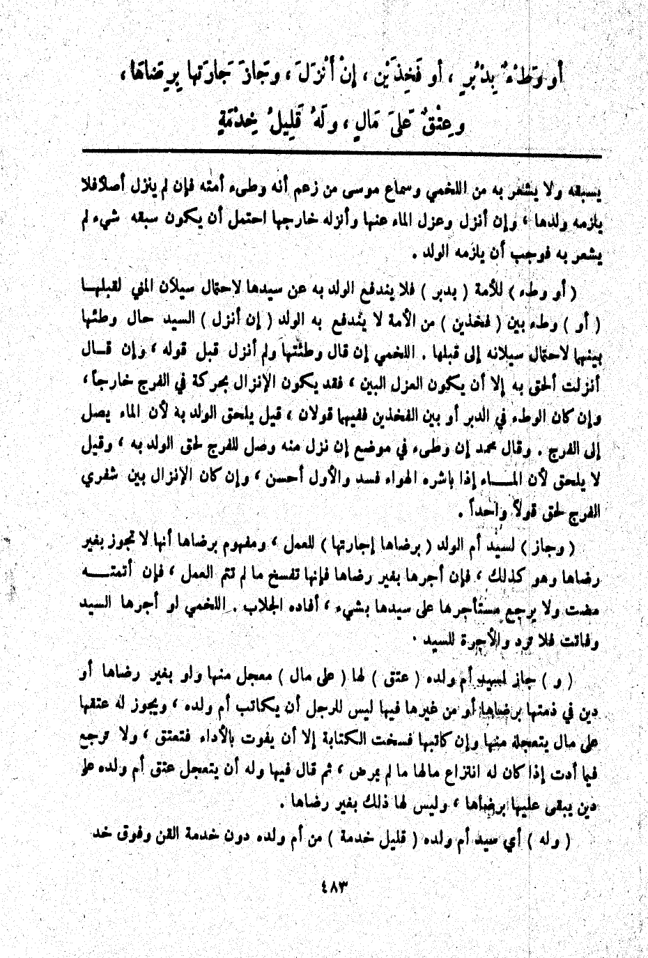 ـــــــــــــــــــــــــــــQيَسْبِقُهُ وَلَا يَشْعُرُ بِهِ مِنْ اللَّخْمِيِّ وَسَمَاعِ مُوسَى مَنْ زَعَمَ أَنَّهُ وَطِئَ أَمَتَهُ فَإِنْ لَمْ يُنْزِلْ أَصْلًا فَلَا يَلْزَمُهُ وَلَدُهَا، وَإِنْ أَنْزَلَ وَعَزَلَ الْمَاءَ عَنْهَا، وَأَنْزَلَهُ خَارِجَهَا احْتَمَلَ أَنْ يَكُونَ سَبَقَهُ شَيْءٌ لَمْ يَشْعُرْ بِهِ فَوَجَبَ أَنْ يَلْزَمَهُ الْوَلَدُ.