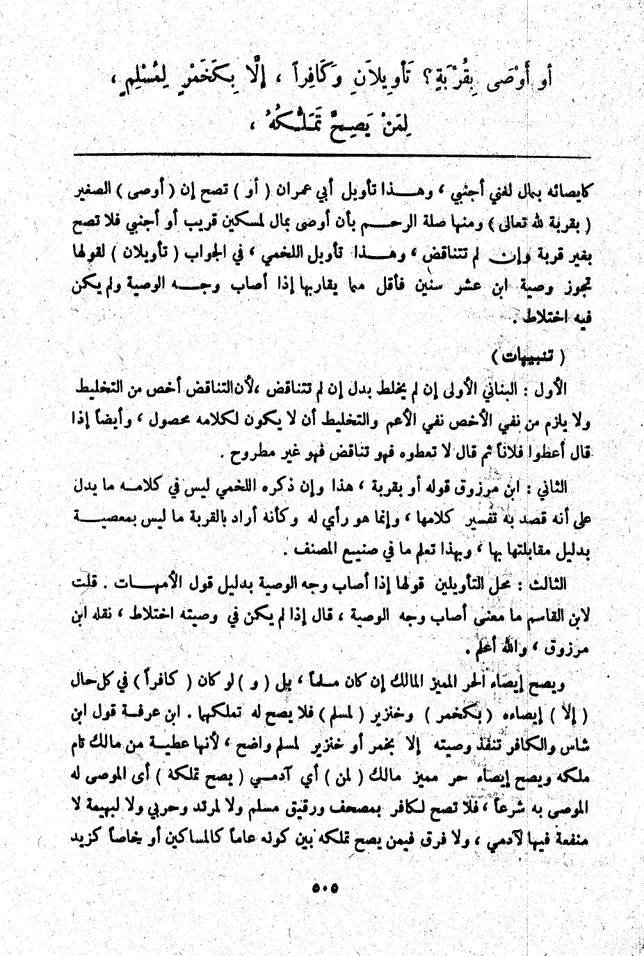 الثَّالِثُ: مَحَلُّ التَّأْوِيلَيْنِ قَوْلُهَا إذَا أَصَابَ وَجْهَ الْوَصِيَّةِ بِدَلِيلِ قَوْلِ الْأُمَّهَاتِ. قُلْت لِابْنِ الْقَاسِمِ: مَا مَعْنَى أَصَابَ وَجْهَ الْوَصِيَّةِ، قَالَ: إذَا لَمْ يَكُنْ فِي وَصِيَّتِهِ اخْتِلَاطٌ، نَقَلَهُ ابْنُ مَرْزُوقٍ، وَاَللَّهُ أَعْلَمُ.