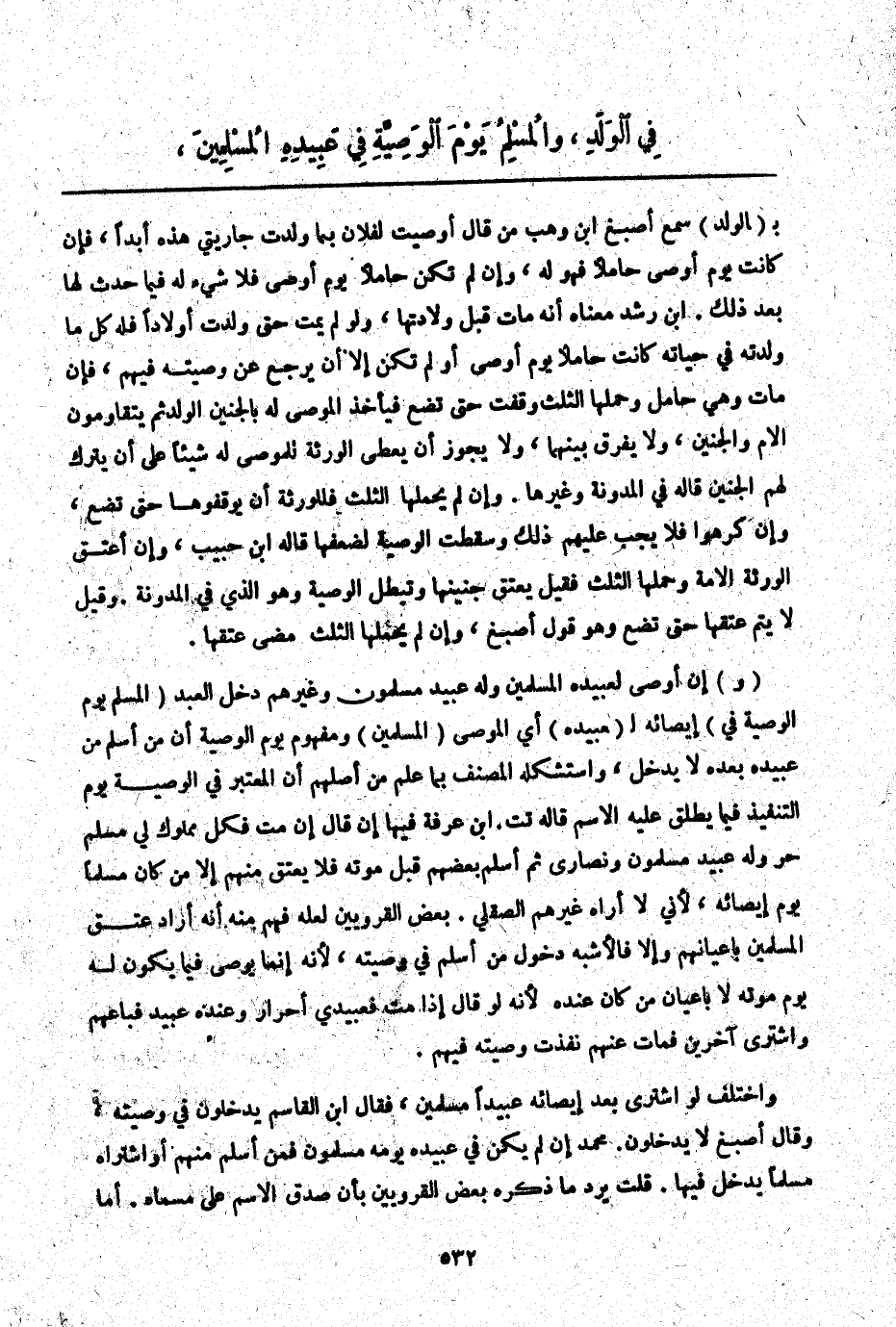 وَالْمُسْلِمُ يَوْمَ الْوَصِيَّةِ فِي عَبِيدِهِ الْمُسْلِمِينَ