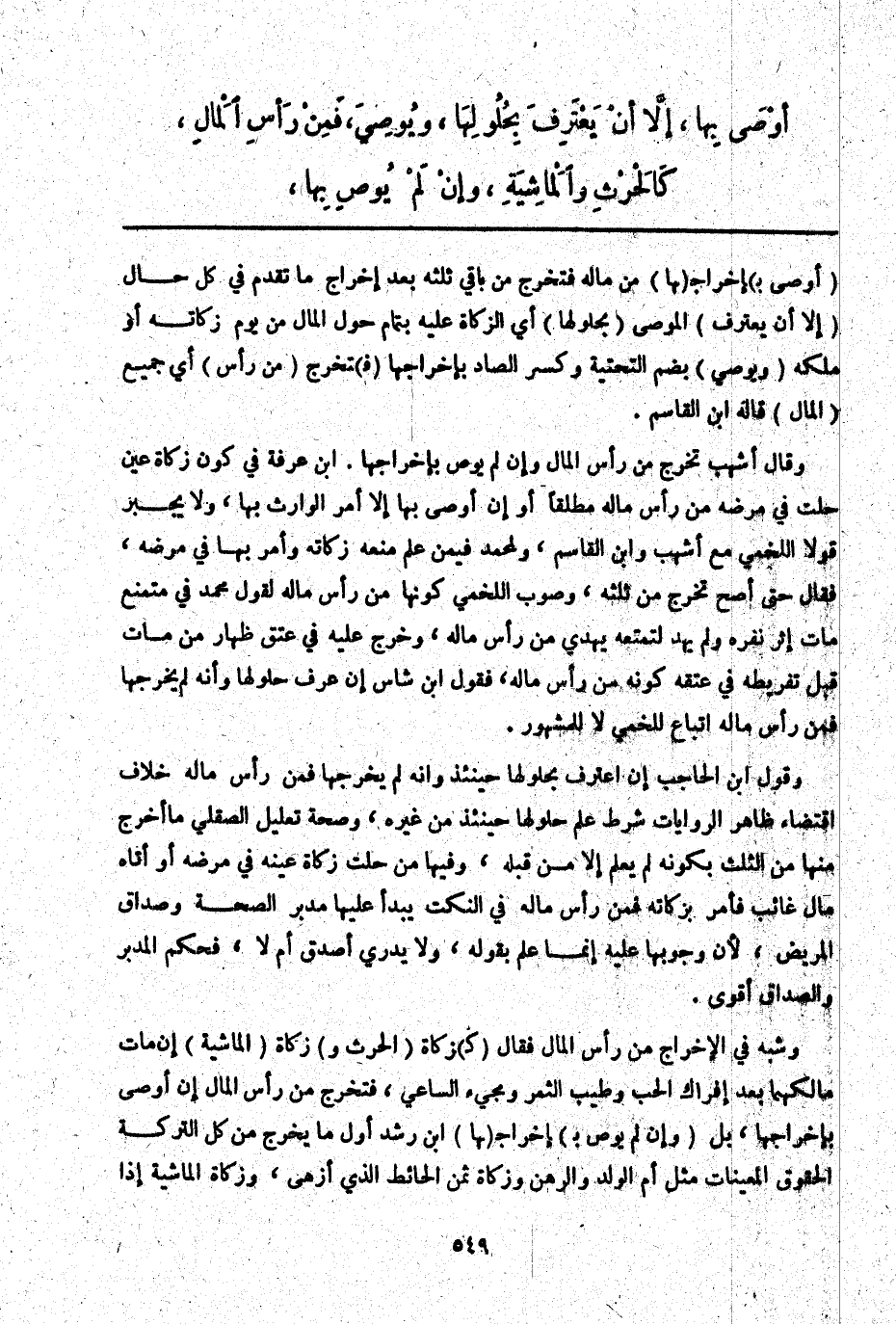 ـــــــــــــــــــــــــــــQ (أَوْصَى بِ) إخْرَاجِ (هَا) مِنْ مَالِهِ فَتُخْرَجُ مِنْ بَاقِي ثُلُثِهِ بَعْدَ إخْرَاجِ مَا تَقَدَّمَ فِي كُلِّ حَالٍ (إلَّا أَنْ يَعْتَرِفَ) الْمُوصِي (بِحُلُولِهَا) أَيْ الزَّكَاةِ عَلَيْهِ بِتَمَامِ حَوْلِ الْمَالِ مِنْ يَوْمِ زَكَاتِهِ أَوْ مِلْكِهِ (وَيُوصِي) بِضَمِّ التَّحْتِيَّةِ وَكَسْرِ الصَّادِ بِإِخْرَاجِهَا (فَ) تُخْرَجُ (مِنْ رَأْسِ) أَيْ جَمِيعِ (الْمَالِ) قَالَهُ ابْنُ الْقَاسِمِ.