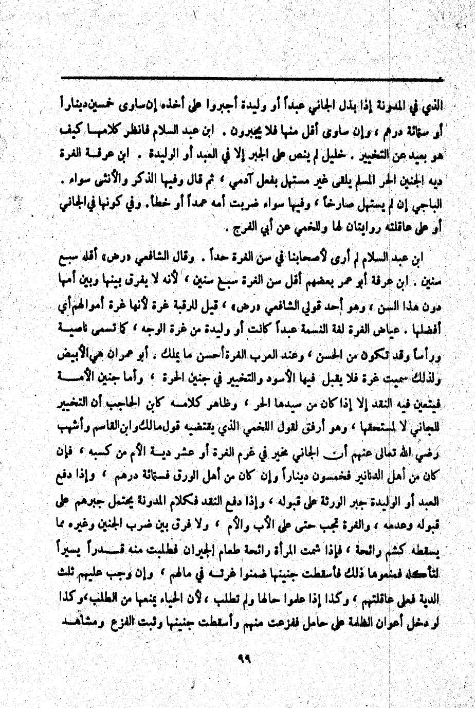 ـــــــــــــــــــــــــــــQالَّذِي فِي الْمُدَوَّنَةِ إذَا بَذَلَ الْجَانِي عَبْدًا أَوْ وَلِيدَةً أُجْبِرُوا عَلَى أَخْذِهِ إنْ سَاوَى خَمْسِينَ دِينَارًا أَوْ سِتَّمِائَةِ دِرْهَمٍ، وَإِنْ سَاوَى أَقَلَّ مِنْهَا فَلَا يُجْبَرُونَ. ابْنُ عَبْدِ السَّلَامِ فَانْظُرْ كَلَامَهَا كَيْفَ هُوَ بَعِيدٌ عَنْ التَّخْيِيرِ. خَلِيلٌ لَمْ يَنُصَّ عَلَى الْجَبْرِ إلَّا فِي الْعَبْدِ أَوْ الْوَلِيدَةِ. ابْنُ عَرَفَةَ الْغُرَّةُ دِيَةُ الْجَنِينِ الْحُرِّ الْمُسْلِمِ يُلْقَى غَيْرَ مُسْتَهِلٍّ بِفِعْلِ آدَمِيٍّ، ثُمَّ قَالَ وَفِيهَا الذَّكَرُ وَالْأُنْثَى سَوَاءٌ. الْبَاجِيَّ إنْ لَمْ يَسْتَهِلَّ صَارِخًا، وَفِيهَا سَوَاءٌ ضُرِبَتْ أُمُّهُ عَمْدًا أَوْ خَطَأً. وَفِي كَوْنِهَا فِي الْجَانِي أَوْ عَلَى عَاقِلَتِهِ رِوَايَتَانِ لَهَا وَلِلَّخْمِيِّ عَنْ أَبِي الْفَرَجِ.
