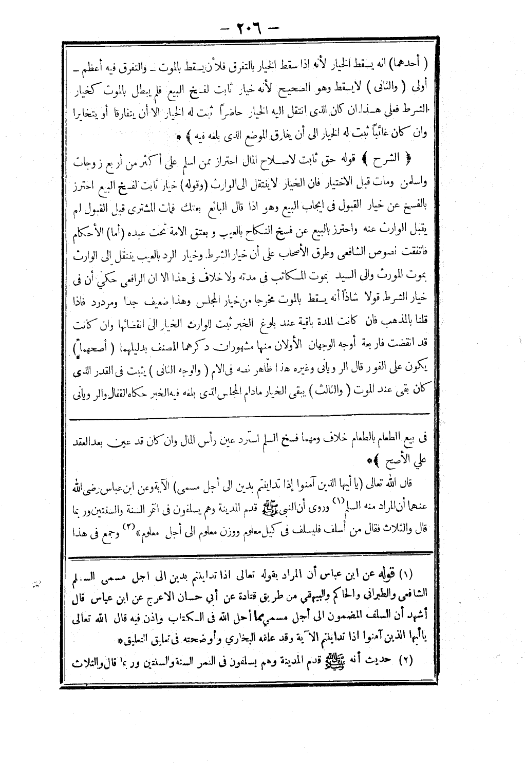 في بيع الطعام بالطعام خلاف ومهما فسخ السلم استرد عين رأس المال وان كان قد عين بعد العقد علي الاصح) * قال الله تعالى (يا أيها الذين آمنوا إذا تداينتم بدين إلى أجل مسمى) الآية وعن ابن عباس رضى الله عنهما أن المراد منه السلم وروى أن النبي صلى الله عليه وسلم قدم المدينة وهم يسلفون في التمر السنة والسنتين وربما قال والثلاث فقال من أسلف فليسلف في كيل معلوم ووزن معلوم إلى أجل معلوم " وجمع في هذا