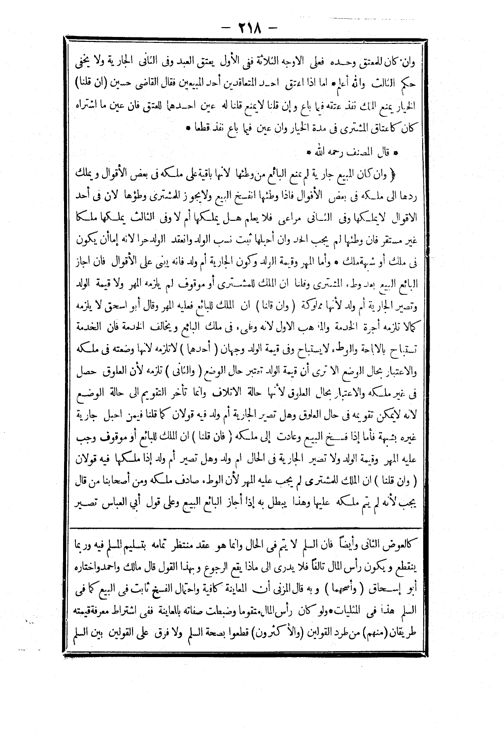 كالعوض الثاني وأيضا فان السلم لا يتم في الحال وانما هو عقد منتظر تمامه بتسليم المسلم فيه وربما ينقطع ويكون رأس المال تالفا فلا يدرى إلى ماذا يقع الرجوع وبهذا القول قال مالك واحمد واختاره أبو إسحاق (وأصحهما) وبه قال المزني أن المعاينة كافية واحتمال الفسخ ثابت في البيع كما في السلم هذا في المثليات * ولو كان رأس المال متقوما وضبطت صفاته بالمعاينة ففى اشتراط معرفة قيمته طريقان (منهم) من طرد القولين (والاكثرون) قطعوا بصحة السلم ولا فرق على القولين بين السلم