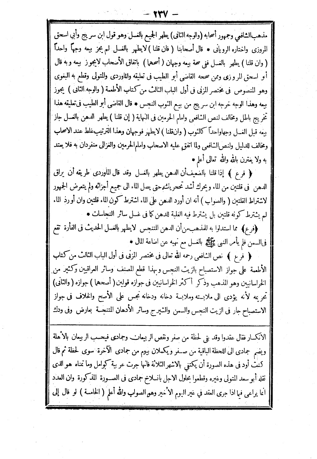 الانكسار فقال عقدوا وقد بقى لحظة من صفر ونقص الربيعان وجمادى فيحسب الربيعان بالاهلة ويضم جمادى إلى اللحظة الباقية من صفر ويكملان بيوم من جمادى الآخرة سوى لحظة ثم قال كنت أود في هذه الصورة أن يكتفي بالاشهر الثلاثة فانها جرت عربية كوامل وما تمناه هو الذى نقله أبو سعد المتولي وغيره وقطعوا بحلول الاجل بانسلاخ جمادى في الصورة المذكورة وان العدد انما يراعى فيما إذا جرى العقد في غير اليوم الاخير وهو الصواب والله أعلم (الخامسة) لو قال إلى