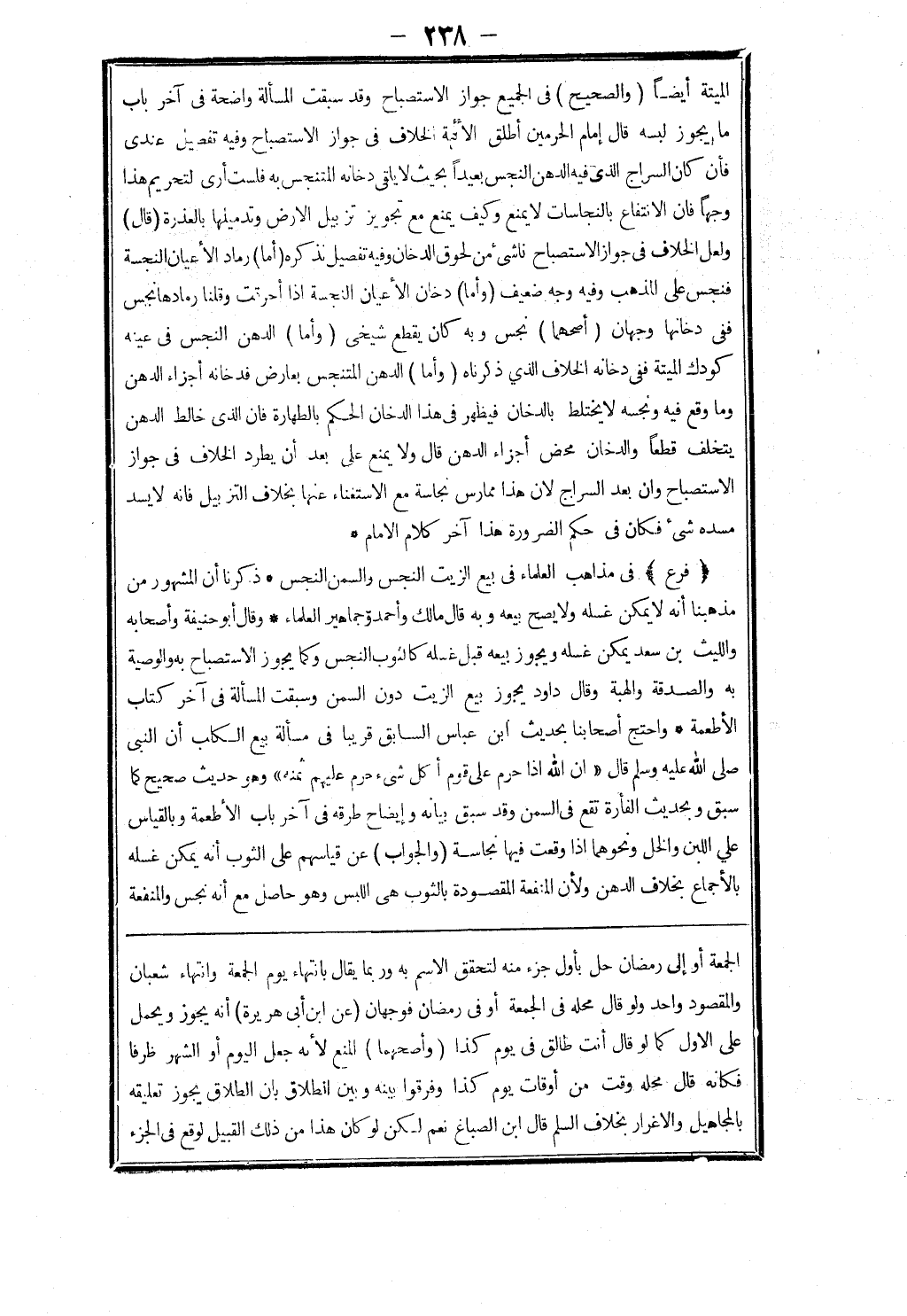 الجمعة أو إلى رمضان حل بأول جزء منه لتحقق الاسم به وربما يقال بانتهاء يوم الجمعة وانتهاء شعبان والمقصود واحد ولو قال محله في الجمعة أو في رمضان فوجهان (عن ابن أبى هريرة) أنه يجوز ويحمل على الاول كما لو قال أنت طالق في يوم كذا (وأصحهما) المنع لانه جعل اليوم أو الشهر ظرفا فكأنه قال محله وقت من أوقات يوم كذا وفرقوا بينه وبين الطلاق بان الطلاق يجوز تعليقه بالمجاهيل والاغرار بخلاف السلم قال ابن الصباغ نعم لكن لو كان هذا من ذلك القبيل لوقع في الجزء