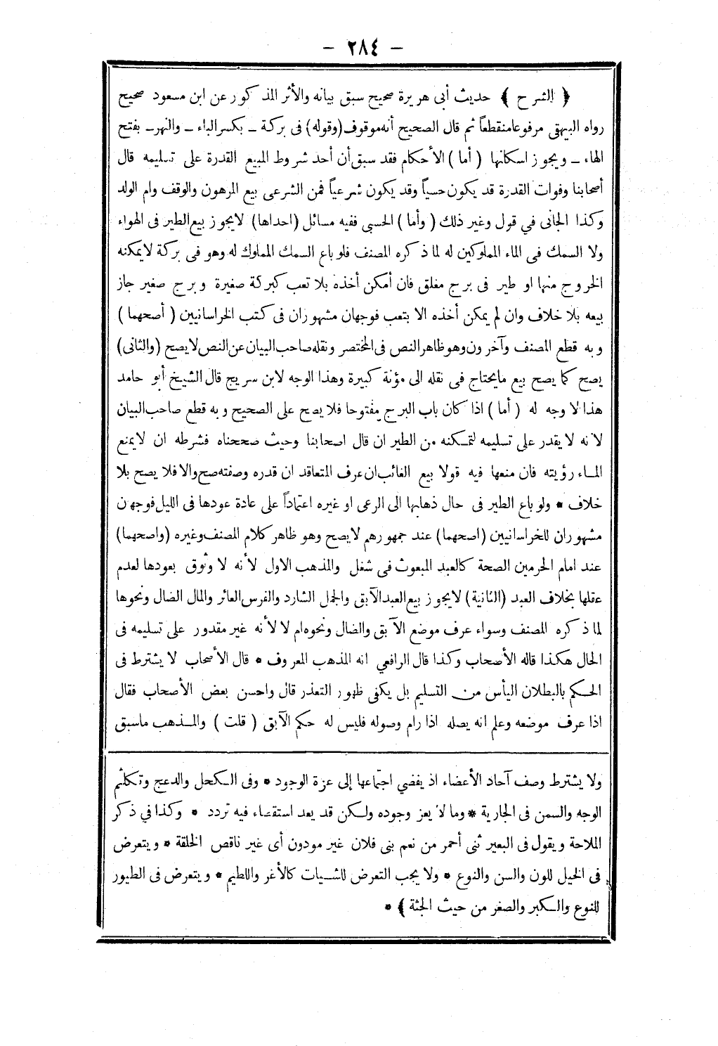 ولا يشترط وصف آحاد الاعضاء إذ يفضي اجتماعها إلى عزة الوجود * وفى الكحل والدعج وتكلثم الوجه والسمن في الجارية * وما لا يعز وجوده ولكن قد يعد استقصاء فيه تردد * وكذا في ذكر الملاحة ويقول في البعير ثنى أحمر من نعم بنى فلان غير مودون أي غير ناقص الخلقة * ويتعرض في الخيل للون والسن والنوع * ولا يجب التعرض للشيات كالطغر واللطيم * ويتعرض في الطيور للنوع والكبر والصغر من حيث الجثة) *