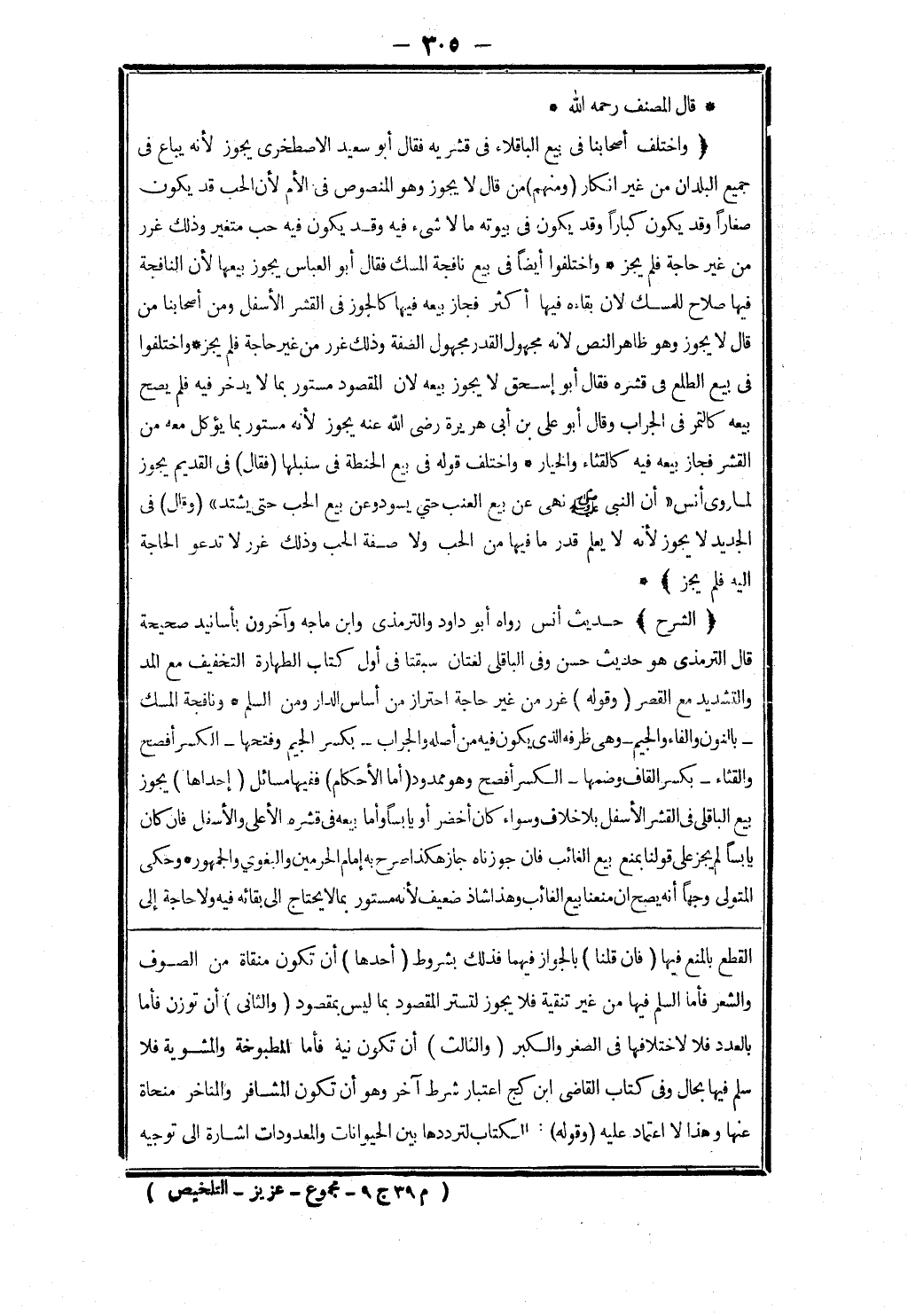 القطع بالمنع فيها (فان قلنا) بالجواز فيهما فذلك بشروط (أحدها) أن تكون منقاة من الصوف والشعر فأما السلم فيها من غير تنقية فلا يجوز لتستر المقصود بما ليس بمقصود (والثانى) أن توزن فأما بالعدد فلا لاختلافها في الصغر والكبر (والثالث) أن تكون نية فأما المطبوخة والمشوية فلا سلم فيها بحال وفى كتاب القاضى ابن كج اعتبار شرط آخر وهو أن تكون المشافر والمناخر منحاة عنها وهذا لا اعتماد عليه (وقوله) : الكتاب لترددها بين الحيوانات والمعدودات اشارة إلى توجيه
