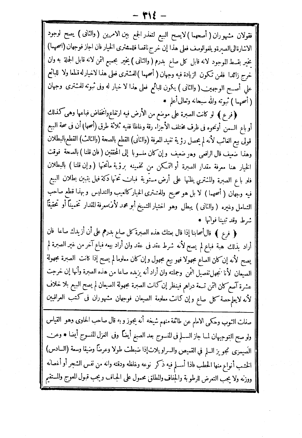 صفات الثوب وحكى الامام عن طائفة منهم شيخه أنه يجوز وبه قال صاحب الحاوى وهو القياس ولو صح التوجيهان لما جاز السلم في المنسوج بعد الصبغ أيضا وفى الغزل المنسوج أيضا * وعن الصيمري تجويز السلم في القميص والسراويلات إذا ضبطت طولا وعرضا وضيقا وسعة (السادس) الخشب أنواع منها الحطب فإذا أسلم فيه ذكر نوعه وغلظه ودقته وانه من نفس الشجر أو أغصانه ووزنه ولا يجب التعرض للرطوبة والجفاف والمطلق محمول على الجاف ويجب قبول المعوج والمستقيم