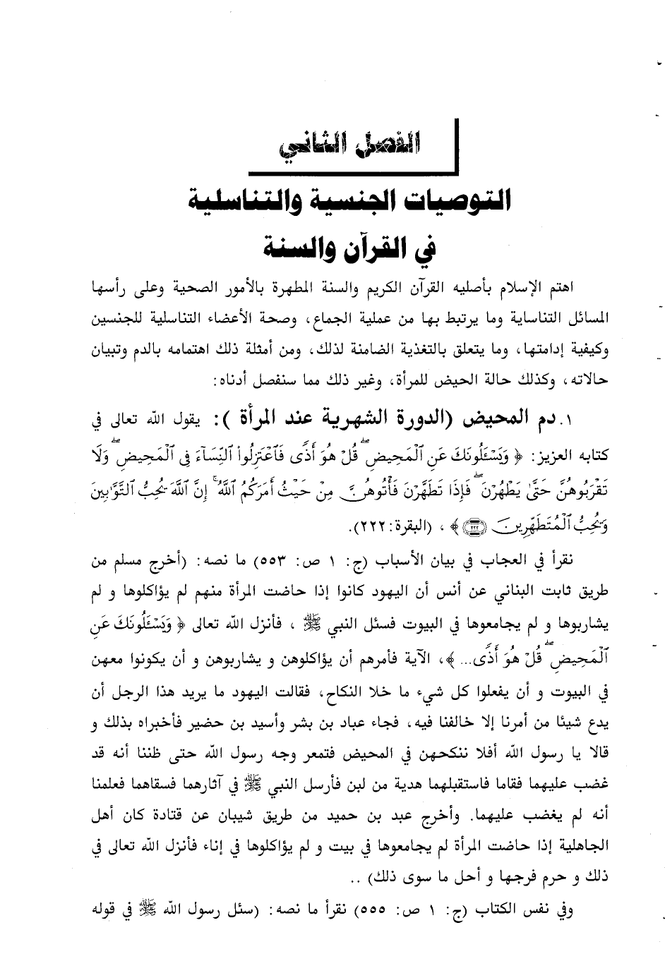 الفصل الثاني التوصيات الجنسية والتناسلية في القرآن والسنة