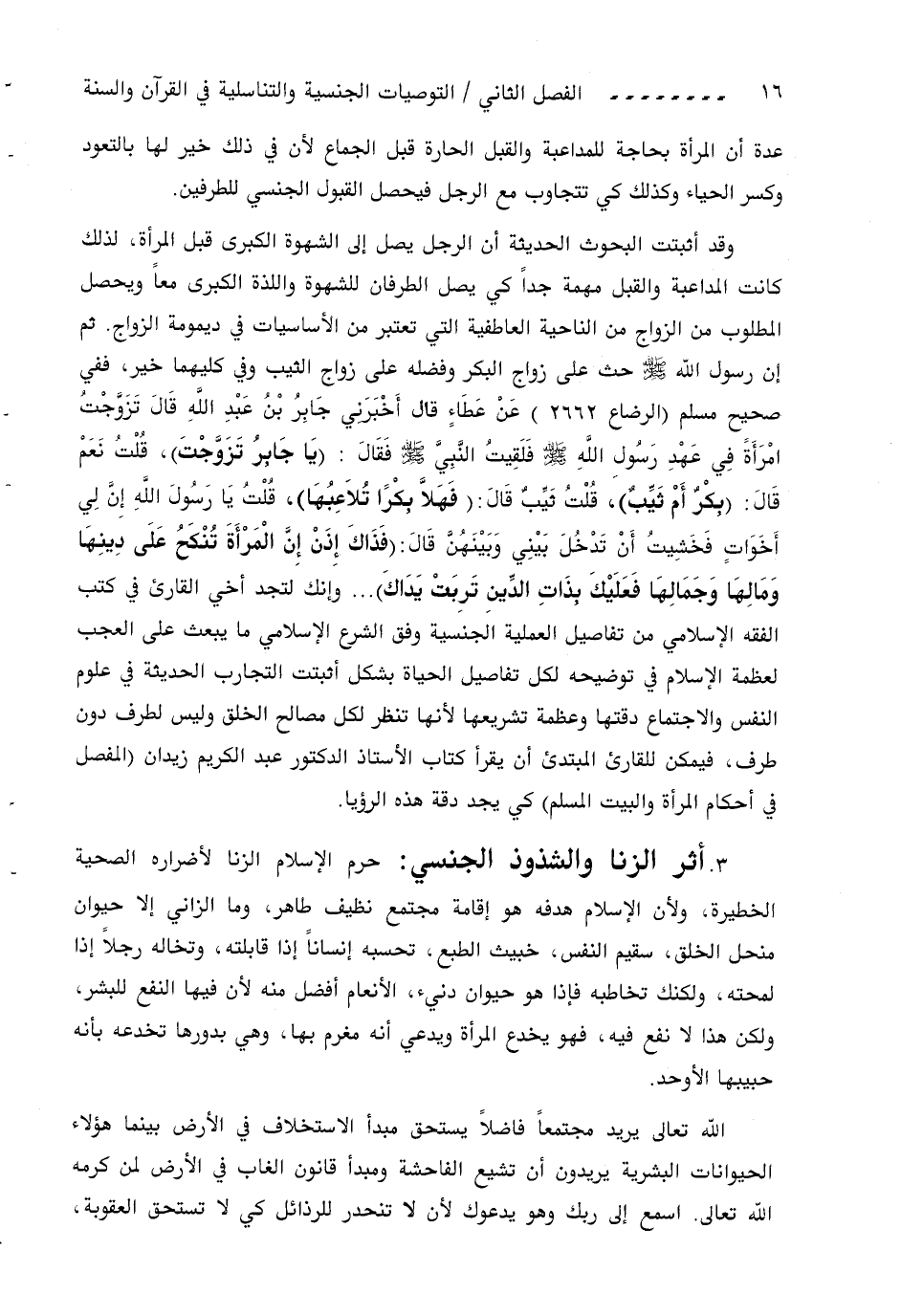 وقد أثبتت البحوث الحديثة أن الرجل يصل إلى الشهوة الكبرى قبل المرأة، لذلك كانت المداعبة والقبل مهمة جدا كي يصل الطرفان للشهوة واللذة الكبرى معا ويحصل المطلوب من الزواج من الناحية العاطفية التي تعتبر من الأساسيات في ديمومة الزواج. ثم إن رسول اللّه صلى اللّه عليه وسلم حث على زواج البكر وفضله على زواج الثيب وفي كليهما خير، ففي صحيح مسلم (الرضاع 2662) عن عطاء قال أخبرني جابر بن عبد اللّه قال تزوّجت امرأة في عهد رسول اللّه صلى اللّه عليه وسلم فلقيت النّبيّ صلى اللّه عليه وسلم فقال: (يا جابر تزوّجت)، قلت نعم قال: (بكر أم ثيّب)، قلت ثيّب قال: (فهلّا بكرا تلاعبها)، قلت يا رسول اللّه إنّ لي أخوات فخشيت أن تدخل بيني وبينهنّ قال: (فذاك إذن إنّ المرأة تنكح على دينها ومالها وجمالها فعليك بذات الدّين تربت يداك) ... وإنك لتجد أخي القارئ في كتب الفقه الإسلامي من تفاصيل العملية الجنسية وفق الشرع الإسلامي ما يبعث على العجب لعظمة الإسلام في توضيحه لكل تفاصيل الحياة بشكل أثبتت التجارب الحديثة في علوم النفس والاجتماع دقتها وعظمة تشريعها لأنها تنظر لكل مصالح الخلق وليس لطرف دون طرف، فيمكن للقارئ المبتدئ أن يقرأ كتاب الأستاذ الدكتور عبد الكريم زيدان (المفصل في أحكام المرأة والبيت المسلم) كي يجد دقة هذه الرؤيا.