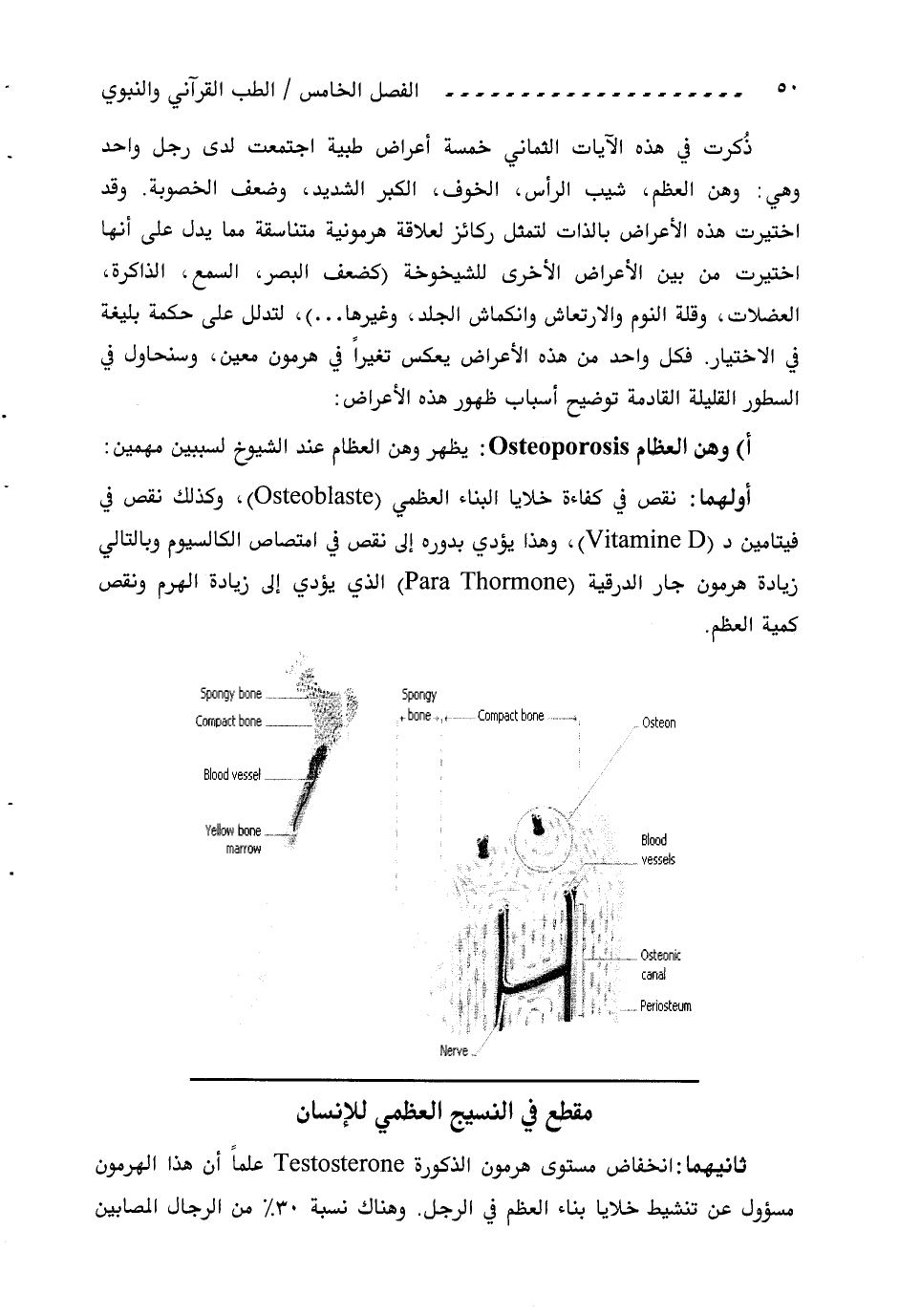 ذكرت في هذه الآيات الثماني خمسة أعراض طبية اجتمعت لدى رجل واحد وهي: وهن العظم، شيب الرأس، الخوف، الكبر الشديد، وضعف الخصوبة. وقد اختيرت هذه الأعراض بالذات لتمثل ركائز لعلاقة هرمونية متناسقة مما يدل على أنها اختيرت من بين الأعراض الأخرى للشيخوخة (كضعف البصر، السمع، الذاكرة، العضلات، وقلة النوم والارتعاش وانكماش الجلد، وغيرها .. )، لتدل على حكمة بليغة في الاختيار. فكل واحد من هذه الأعراض يعكس تغيرا في هرمون معين، وسنحاول في السطور القليلة القادمة توضيح أسباب ظهور هذه الأعراض: