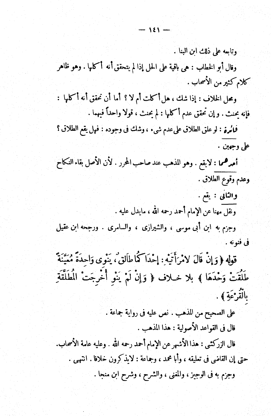 فَائِدَةٌ: لَوْ عَلَّقَ الطَّلَاقَ عَلَى عَدَمِ شَيْءٍ، وَشَكَّ فِي وُجُودِهِ: فَهَلْ يَقَعُ الطَّلَاقُ؟ عَلَى وَجْهَيْنِ. أَحَدُهُمَا: لَا يَقَعُ، وَهُوَ الْمَذْهَبُ عِنْدَ صَاحِبِ الْمُحَرَّرِ، لِأَنَّ الْأَصْلَ بَقَاءُ النِّكَاحِ وَعَدَمُ وُقُوعِ الطَّلَاقِ. وَالثَّانِي: يَقَعُ، وَنَقَلَ مُهَنَّا عَنْ الْإِمَامِ أَحْمَدَ - رَحِمَهُ اللَّهُ -، مَا يَدُلُّ عَلَيْهِ، وَجَزَمَ بِهِ ابْنُ أَبِي مُوسَى، وَالشِّيرَازِيُّ، وَالسَّامِرِيُّ، وَرَجَّحَهُ ابْنُ عَقِيلٍ فِي فُنُونِهِ.