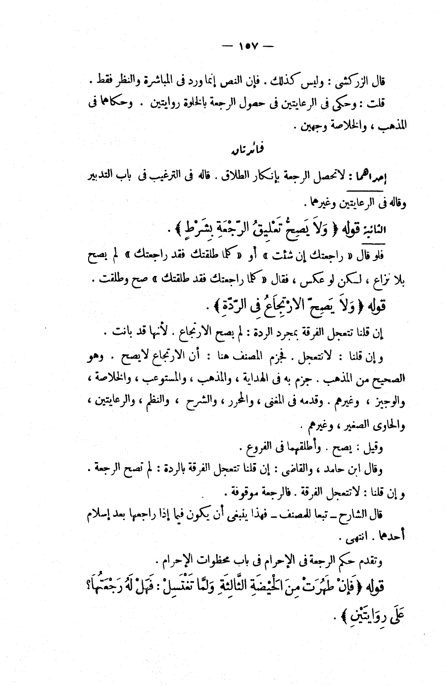 فَائِدَتَانِ. إحْدَاهُمَا: لَا تَحْصُلُ الرَّجْعَةُ بِإِنْكَارِ الطَّلَاقِ، قَالَهُ فِي التَّرْغِيبِ فِي بَابِ التَّدْبِيرِ وَقَالَهُ فِي الرِّعَايَتَيْنِ وَغَيْرِهِمَا. الثَّانِيَةُ. قَوْلُهُ (وَلَا يَصِحُّ تَعْلِيقُ الرَّجْعَةِ بِشَرْطٍ) ، فَلَوْ قَالَ " رَاجَعْتُك إنْ شِئْت " أَوْ " كَمَا طَلَّقْتُك فَقَدْ رَاجَعْتُك " لَمْ يَصِحَّ بِلَا نِزَاعٍ، لَكِنْ لَوْ عَكَسَ، فَقَالَ " كُلَّمَا رَاجَعْتُك فَقَدْ طَلَّقْتُك " صَحَّ وَطَلُقَتْ.