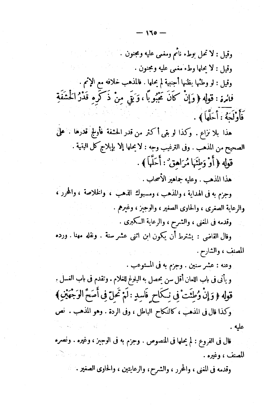 فَائِدَةٌ: قَوْلُهُ (وَإِنْ كَانَ مَجْبُوبًا، وَبَقِيَ مِنْ ذَكَرِهِ قَدْرُ الْحَشَفَةِ فَأَوْلَجَهُ) (أَحَلَّهَا) هَذَا بِلَا نِزَاعٍ، وَكَذَا لَوْ بَقِيَ أَكْثَرُ مِنْ قَدْرِ الْحَشَفَةِ فَأَوْلَجَ قَدْرَهَا، عَلَى الصَّحِيحِ مِنْ الْمَذْهَبِ، وَفِي التَّرْغِيبِ وَجْهٌ: لَا يُحِلُّهَا إلَّا بِإِيلَاجِ كُلِّ الْبَقِيَّةِ. قَوْلُهُ (أَوْ) (وَطِئَهَا مُرَاهِقٌ) (أَحَلَّهَا) ، هَذَا الْمَذْهَبُ، وَعَلَيْهِ جَمَاهِيرُ الْأَصْحَابِ، وَجَزَمَ بِهِ فِي الْهِدَايَةِ، وَالْمُذْهَبِ، وَمَسْبُوكِ الذَّهَبِ، وَالْخُلَاصَةِ، وَالْمُحَرَّرِ، وَالرِّعَايَةِ الصُّغْرَى، وَالْحَاوِي الصَّغِيرِ، وَالْوَجِيزِ، وَغَيْرِهِمْ، وَقَدَّمَهُ فِي الْمُغْنِي، وَالشَّرْحِ، وَالرِّعَايَةِ الْكُبْرَى، وَقَالَ الْقَاضِي: يُشْتَرَطُ أَنْ يَكُونَ ابْنُ اثْنَيْ عَشْرَ سُنَّةً، وَنَقَلَهُ مُهَنَّا، وَرَدَّهُ الْمُصَنِّفُ، وَالشَّارِحُ، وَعَنْهُ: عَشْرُ سِنِينَ، وَجَزَمَ بِهِ فِي الْمُسْتَوْعِبِ، وَيَأْتِي فِي بَابِ اللِّعَانِ أَقَلُّ سِنٍّ يَحْصُلُ بِهِ الْبُلُوغُ لِلْغُلَامِ، وَتَقَدَّمَ فِي بَابِ الْغُسْلِ.