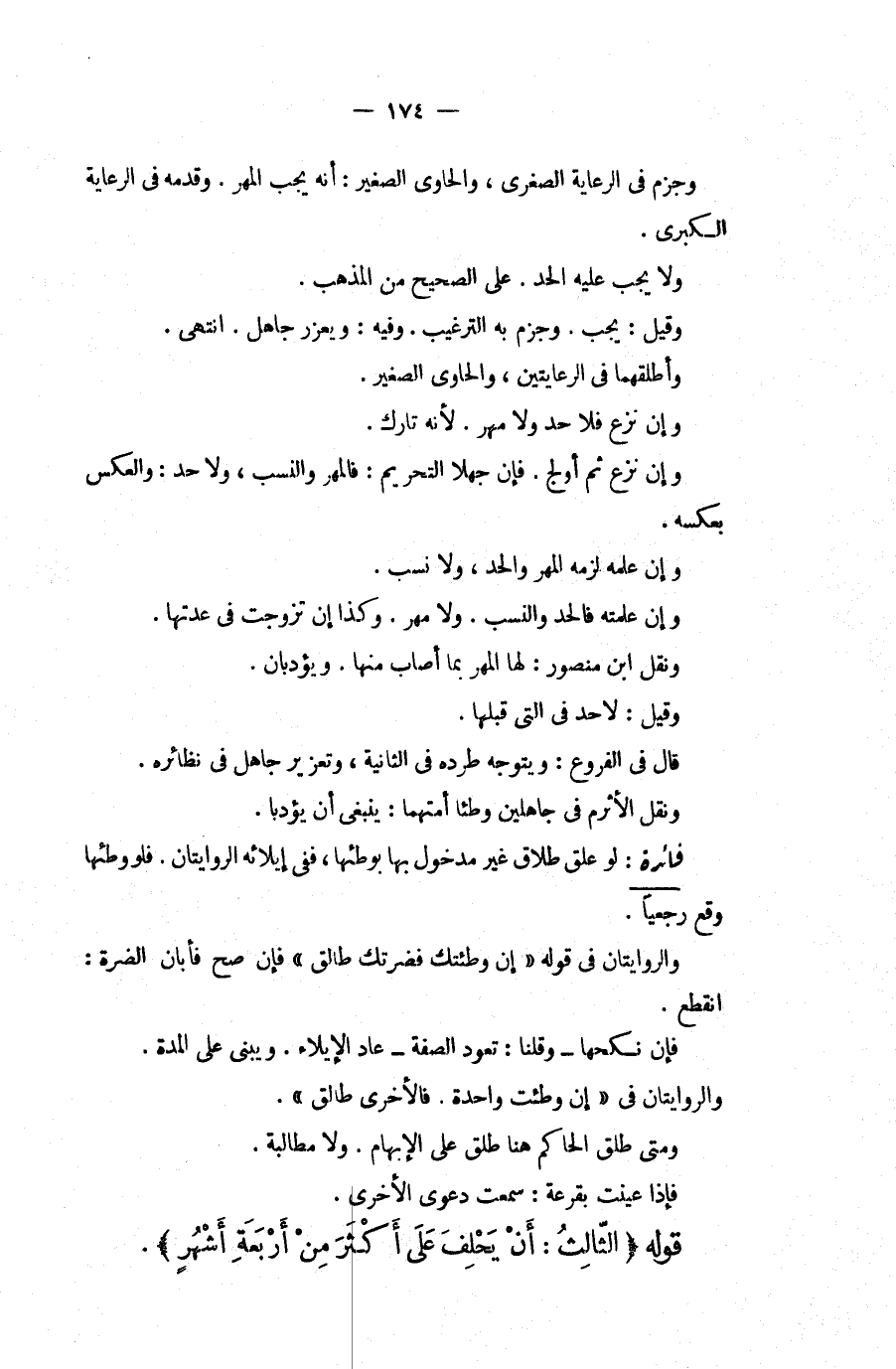 وَجَزَمَ فِي الرِّعَايَةِ الصُّغْرَى، وَالْحَاوِي الصَّغِيرِ: أَنَّهُ يَجِبُ الْمَهْرُ، وَقَدَّمَهُ فِي الرِّعَايَةِ الْكُبْرَى، وَلَا يَجِبُ عَلَيْهِ الْحَدُّ، عَلَى الصَّحِيحِ مِنْ الْمَذْهَبِ، وَقِيلَ: يَجِبُ، وَجَزَمَ بِهِ التَّرْغِيبِ، وَفِيهِ: وَيُعَزَّرُ جَاهِلٌ. انْتَهَى. وَأَطْلَقَهُمَا فِي الرِّعَايَتَيْنِ، وَالْحَاوِي الصَّغِيرِ، وَإِنْ نَزَعَ فَلَا حَدَّ وَلَا مَهْرَ، لِأَنَّهُ تَارِكٌ، وَإِنْ نَزَعَ ثُمَّ أَوْلَجَ، فَإِنْ جَهْلًا لِلتَّحْرِيمِ: فَالْمَهْرُ وَالنَّسَبُ، وَلَا حَدَّ: وَالْعَكْسُ بِعَكْسِهِ، وَإِنْ عَلِمَهُ لَزِمَهُ الْمَهْرُ وَالْحَدُّ، وَلَا نَسَبَ، وَإِنْ عَلِمَتْهُ فَالْحَدُّ وَالنَّسَبُ، وَلَا مَهْرَ، وَكَذَا إنْ تَزَوَّجَتْ فِي عِدَّتِهَا، وَنَقَلَ ابْنُ مَنْصُورٍ: لَهَا الْمَهْرُ بِمَا أَصَابَ مِنْهَا، وَيُؤَدَّبَانِ، وَقِيلَ: لَا حَدَّ فِي الَّتِي قَبْلَهَا، قَالَ فِي الْفُرُوعِ: وَيُتَوَجَّهُ طَرْدُهُ فِي الثَّانِيَةِ، وَتَعْزِيرُ جَاهِلٍ فِي نَظَائِرِهِ، وَنَقَلَ الْأَثْرَمُ فِي جَاهِلَيْنِ وَطِئَا أَمَتَهُمَا: يَنْبَغِي أَنْ يُؤَدَّبَا.
