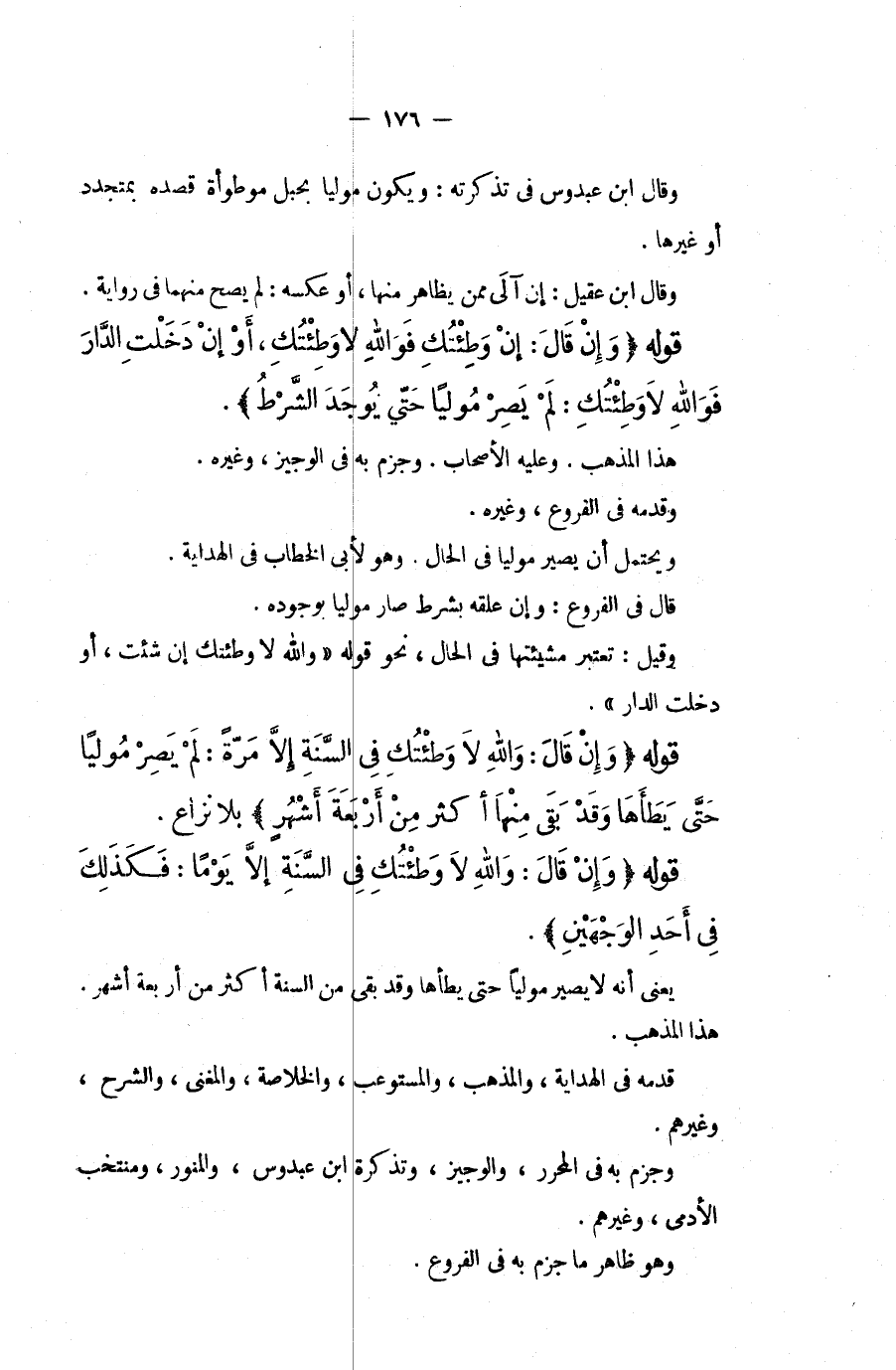 وَقَالَ ابْنُ عَبْدُوسٍ فِي تَذْكِرَتِهِ: وَيَكُونُ مُولِيًا بِحَبَلِ مَوْطُوءَةٍ قَصَدَهُ بِمُتَجَدِّدٍ أَوْ غَيْرِهَا، وَقَالَ ابْنُ عَقِيلٍ: إنْ آلَى مِمَّنْ يُظَاهِرُ مِنْهَا، أَوْ عَكْسُهُ: لَمْ يَصِحَّ مِنْهُمَا فِي رِوَايَةٍ. قَوْلُهُ (وَإِنْ) (قَالَ: إنْ وَطِئْتُك فَوَاَللَّهِ لَا وَطِئْتُك، أَوْ إنْ دَخَلْت الدَّارَ فَوَاَللَّهِ لَا وَطِئْتُك) (لَمْ يَصِرْ مُولِيًا حَتَّى يُوجَدَ الشَّرْطُ) ، هَذَا الْمَذْهَبُ، وَعَلَيْهِ الْأَصْحَابُ، وَجَزَمَ بِهِ فِي الْوَجِيزِ، وَغَيْرِهِ، وَقَدَّمَهُ فِي الْفُرُوعِ، وَغَيْرِهِ، وَيَحْتَمِلُ أَنْ يَصِيرَ مُولِيًا فِي الْحَالِ، وَهُوَ لِأَبِي الْخَطَّابِ فِي الْهِدَايَةِ، قَالَ فِي الْفُرُوعِ: وَإِنْ عَلَّقَهُ بِشَرْطٍ صَارَ مُولِيًا بِوُجُودِهِ، وَقِيلَ: تُعْتَبَرُ مَشِيئَتُهَا فِي الْحَالِ، نَحْوُ قَوْلِهِ " وَاَللَّهِ لَا وَطِئْتُك إنْ شِئْت، أَوْ دَخَلْت الدَّارَ ".