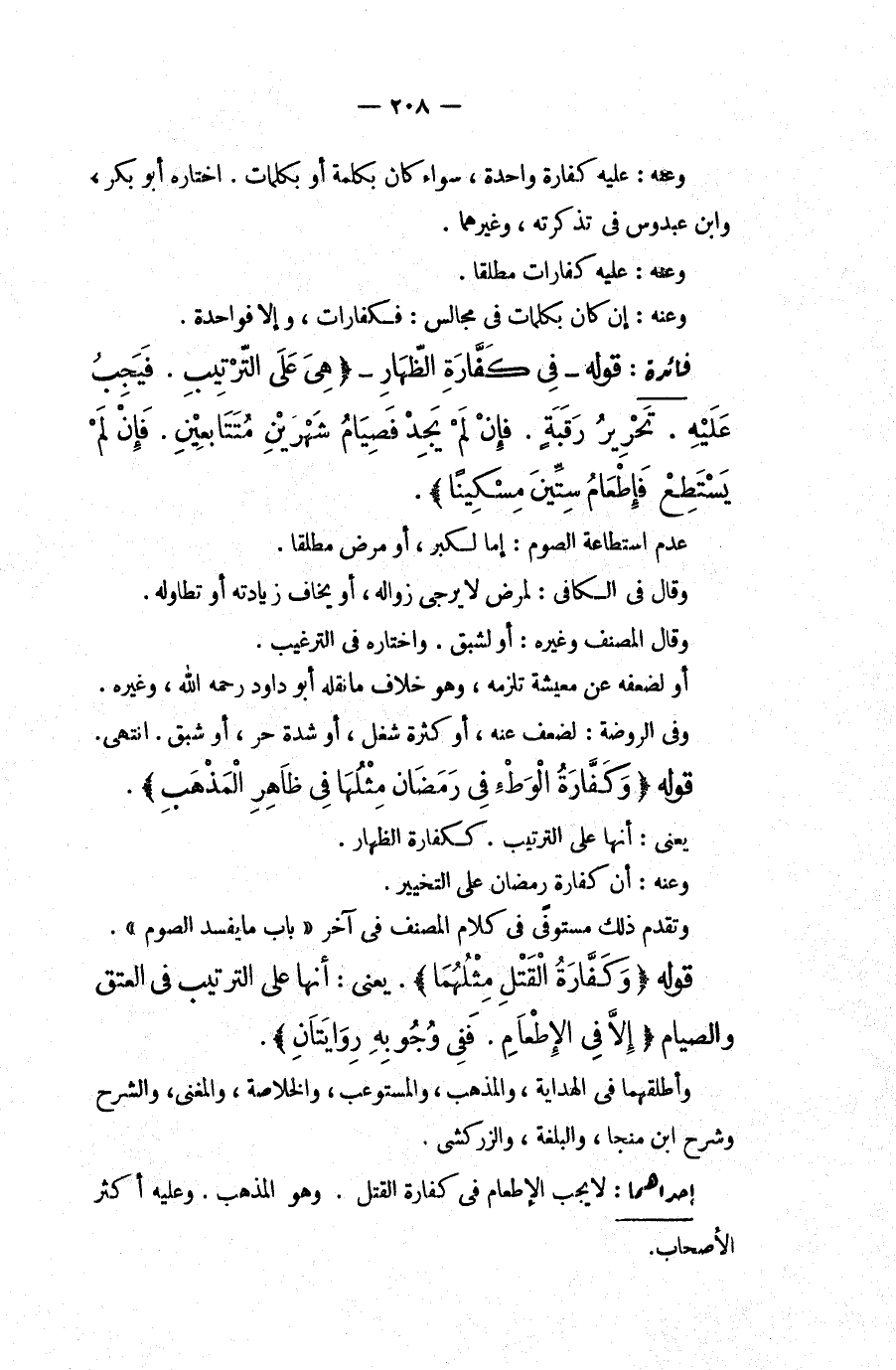 فَائِدَةٌ: قَوْلُهُ فِي كَفَّارَةِ الظِّهَارِ (هِيَ عَلَى التَّرْتِيبِ) (، فَيَجِبُ عَلَيْهِ، تَحْرِيرُ رَقَبَةٍ، فَإِنْ لَمْ يَجِدْ فَصِيَامُ شَهْرَيْنِ مُتَتَابِعَيْنِ، فَإِنْ لَمْ يَسْتَطِعْ فَإِطْعَامُ سِتِّينَ مِسْكِينًا) ، عَدَمُ اسْتِطَاعَةِ الصَّوْمِ: إمَّا لِكِبَرٍ، أَوْ مَرَضٍ مُطْلَقًا، وَقَالَ فِي الْكَافِي: لِمَرَضٍ لَا يُرْجَى زَوَالُهُ، أَوْ يُخَافُ زِيَادَتُهُ أَوْ تَطَاوُلُهُ، وَقَالَ الْمُصَنِّفُ وَغَيْرُهُ: أَوْ لِشَبَقٍ، وَاخْتَارَهُ فِي التَّرْغِيبِ، أَوْ لِضَعْفِهِ عَنْ مَعِيشَةٍ تَلْزَمُهُ، وَهُوَ خِلَافُ مَا نَقَلَهُ أَبُو دَاوُد - رَحِمَهُ اللَّهُ -، وَغَيْرُهُ، وَفِي الرَّوْضَةِ: لِضَعْفٍ عَنْهُ، أَوْ كَثْرَةِ شُغْلٍ، أَوْ شِدَّةِ حَرٍّ، أَوْ شَبَقٍ. انْتَهَى. قَوْلُهُ (وَكَفَّارَةُ الْوَطْءِ فِي رَمَضَانَ مِثْلُهَا فِي ظَاهِرِ الْمَذْهَبِ) ، يَعْنِي: أَنَّهَا عَلَى التَّرْتِيبِ، كَكَفَّارَةِ الظِّهَارِ، وَعَنْهُ: أَنَّ كَفَّارَةَ رَمَضَانَ عَلَى التَّخْيِيرِ، وَتَقَدَّمَ ذَلِكَ مُسْتَوْفًى فِي كَلَامِ الْمُصَنِّفِ فِي آخِرِ " بَابِ مَا يُفْسِدُ الصَّوْمَ ". قَوْلُهُ (وَكَفَّارَةُ الْقَتْلِ مِثْلُهُمَا) ، يَعْنِي: أَنَّهَا عَلَى التَّرْتِيبِ فِي الْعِتْقِ وَالصِّيَامِ (إلَّا فِي الْإِطْعَامِ) (، فَفِي وُجُوبِهِ رِوَايَتَانِ) ، وَأَطْلَقَهُمَا فِي الْهِدَايَةِ، وَالْمُذْهَبِ، وَالْمُسْتَوْعِبِ، وَالْخُلَاصَةِ، وَالْمُغْنِي، وَالشَّرْحِ وَشَرْحِ ابْنِ مُنَجَّا، وَالْبُلْغَةِ، وَالزَّرْكَشِيُّ. إحْدَاهُمَا: لَا يَجِبُ الْإِطْعَامُ فِي كَفَّارَةِ الْقَتْلِ، وَهُوَ الْمَذْهَبُ، وَعَلَيْهِ أَكْثَرُ الْأَصْحَابِ،