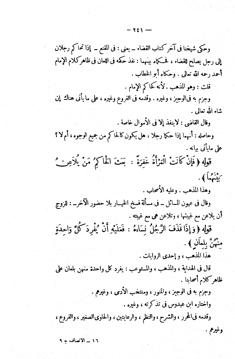 كتاب الإنصاف في معرفة الراجح من الخلاف للمرداوي (اسم الجزء: 9)
